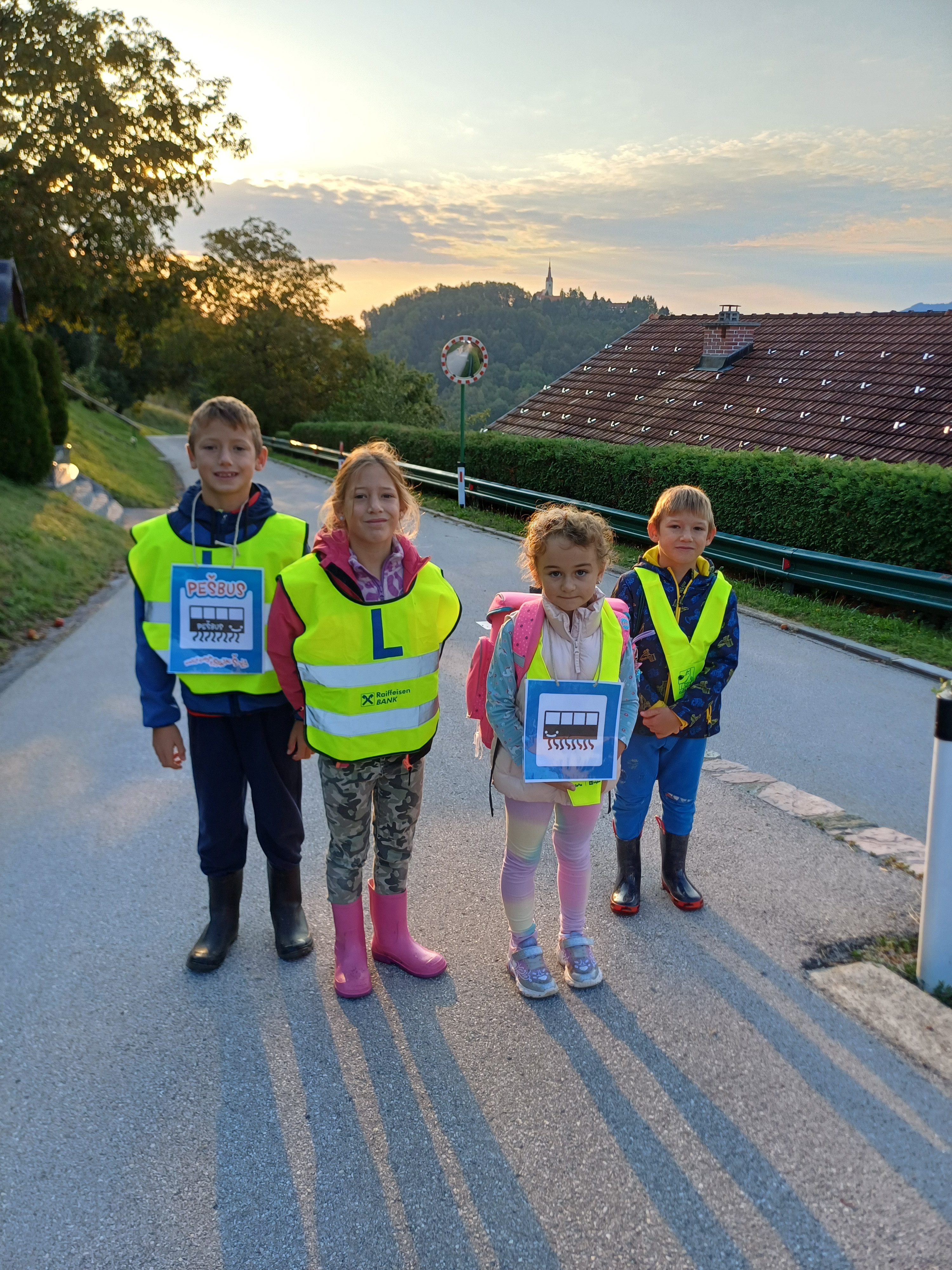 V tednu mobilnosti, smo se učiteljice skupaj z učenci odpravile peš v šolo in nazaj domov. Prva skupina je hodila v spremstvu učiteljice Mateje iz smeri Žegar, druga skupina pa iz smeri Krivica. Uživali smo v prekrasnem sončnem vzhodu, svežem zraku in si pot krajšali s prepevanjem. Na poti nazaj domov se nam je pridružila tudi učiteljica Nastja. Opazovali smo živali na paši, pot pa nam je prekrižala tudi kača smokulja. Sklenili smo, da se bomo  peš v šolo in nazaj domov, podali še večkrat.