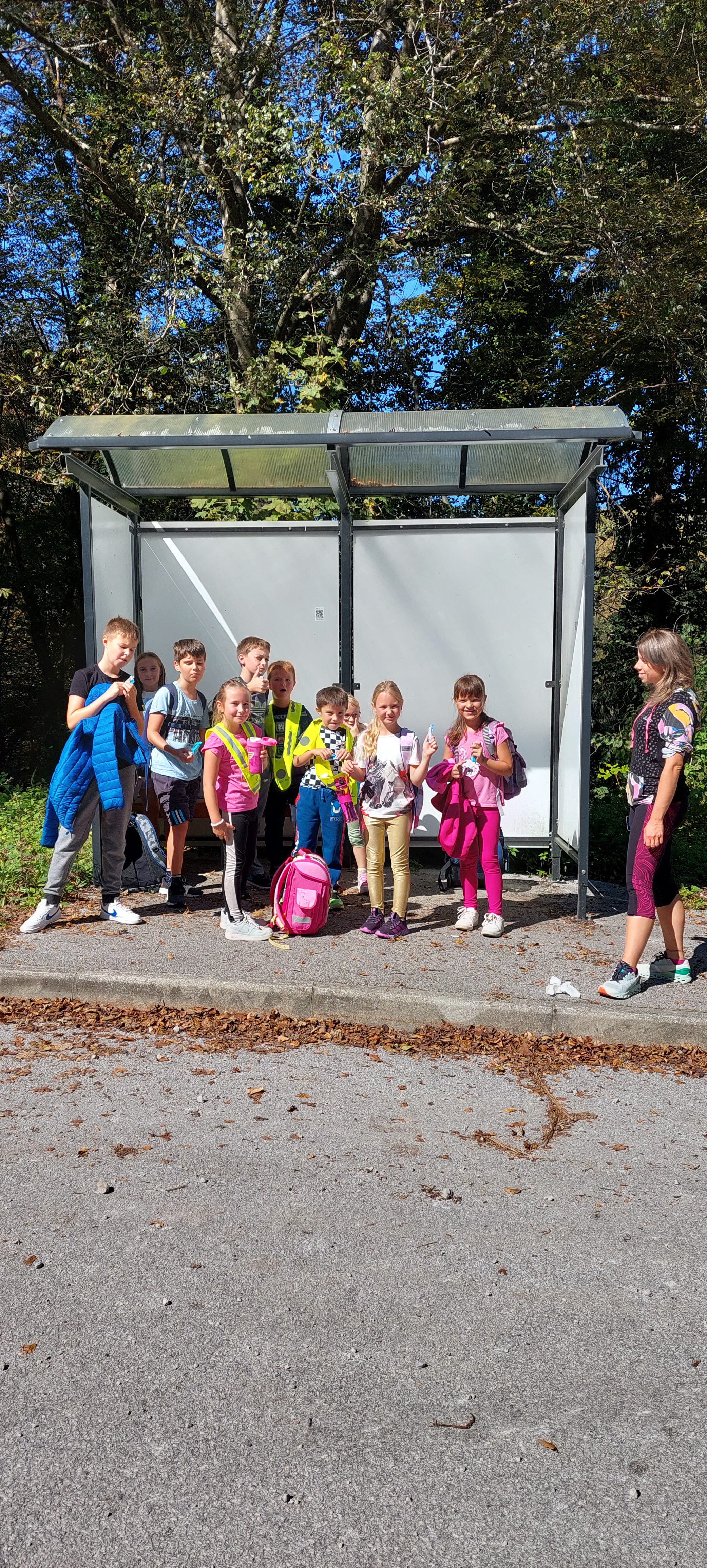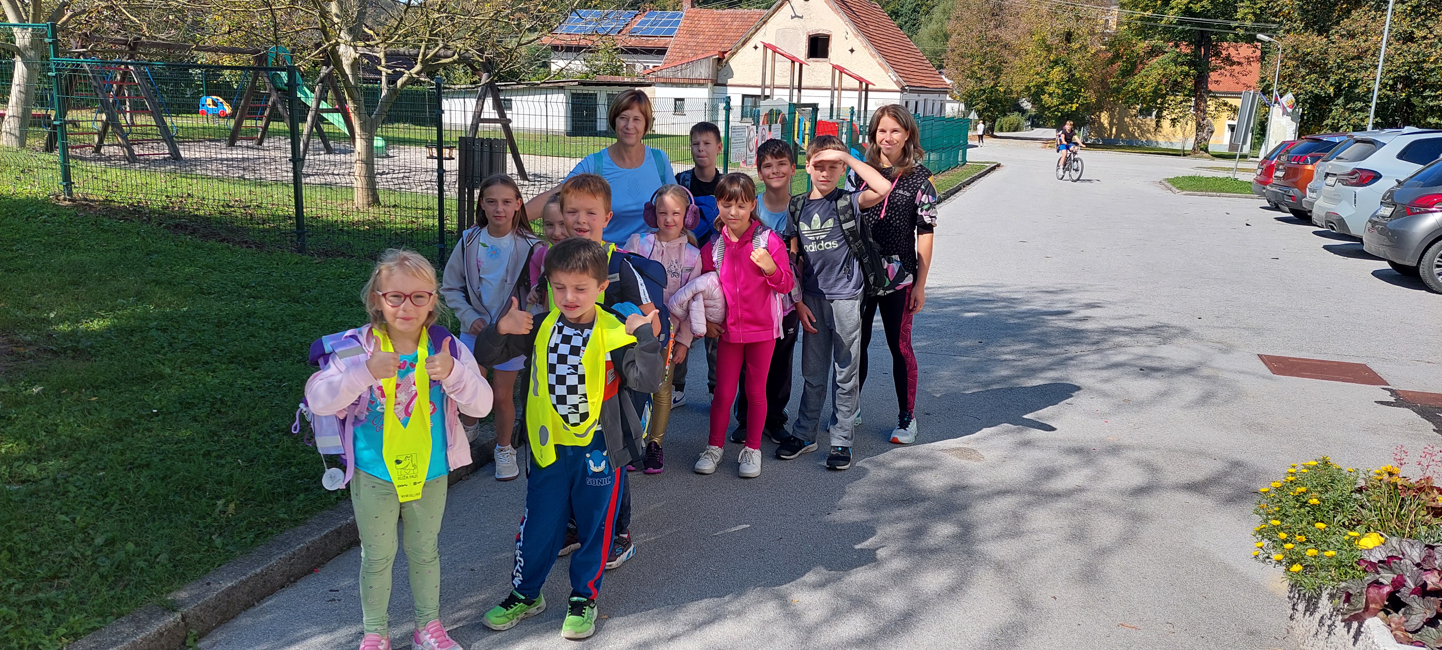 Tako smo se v petek, 20. 9. 2024, v Evropskem tednu mobilnosti, zjutraj ob 6.45 zbrali pred šolo in peš krenili do postaje Mrzlek. Tam so nas že čakali naši sošolci, tisti, ki so želeli iti v šolo peš. In smo krenili. Nekateri s šolsko torbo, drugi brez, a vsi z dobro voljo in nasmehom na obrazu. Kar 22 nas je polnih energije v spremstvu učiteljic prikorakalo v šolo.