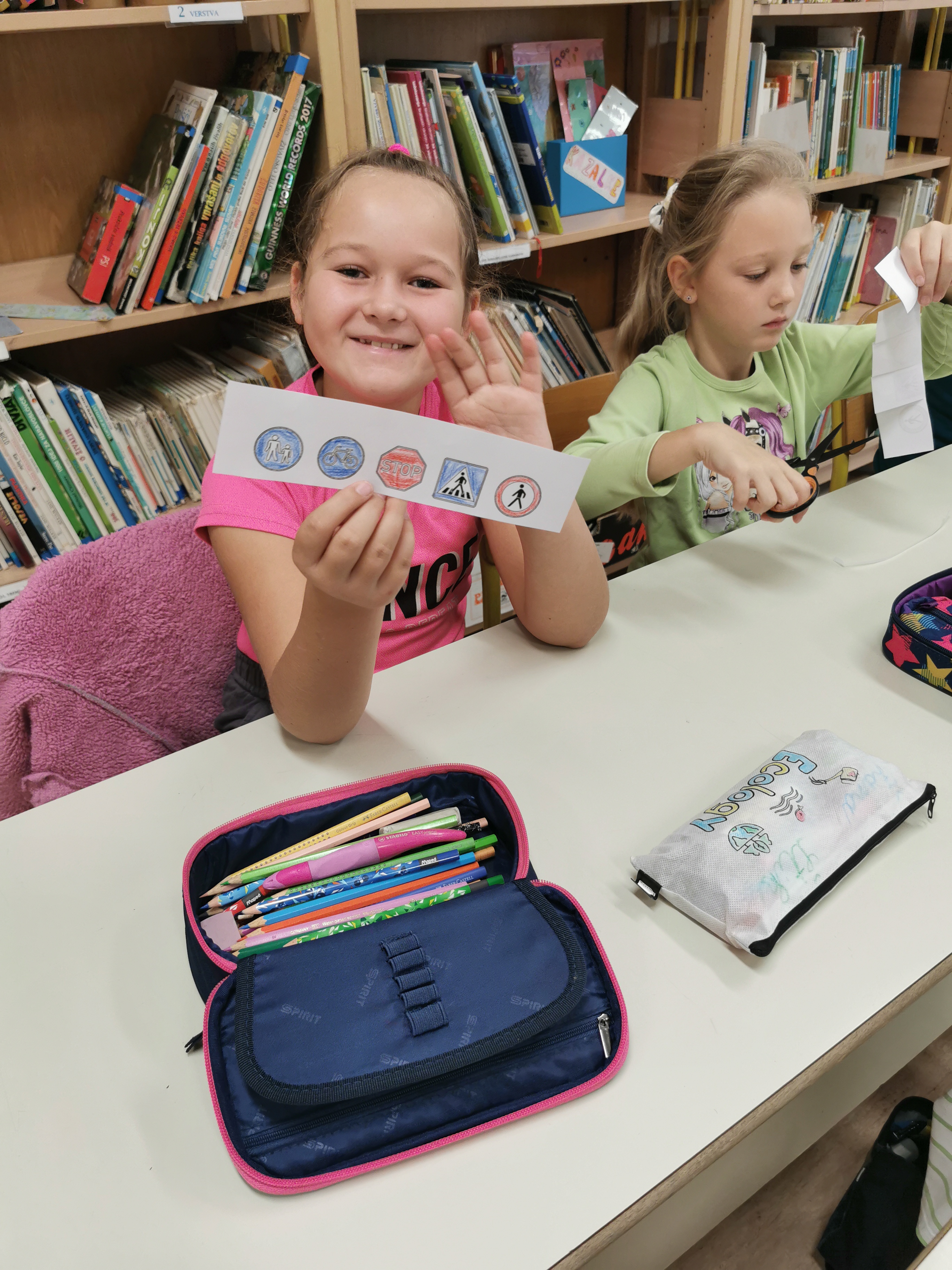 Vsi skupaj so opazovali tudi prometne znake in talne označbe v okolici šole. Zelo dobro so jih poznali. Za konec so v razredu še dobili pobarvanko Pasavčka in tako zaključili poučen in zabaven tehniški dan.