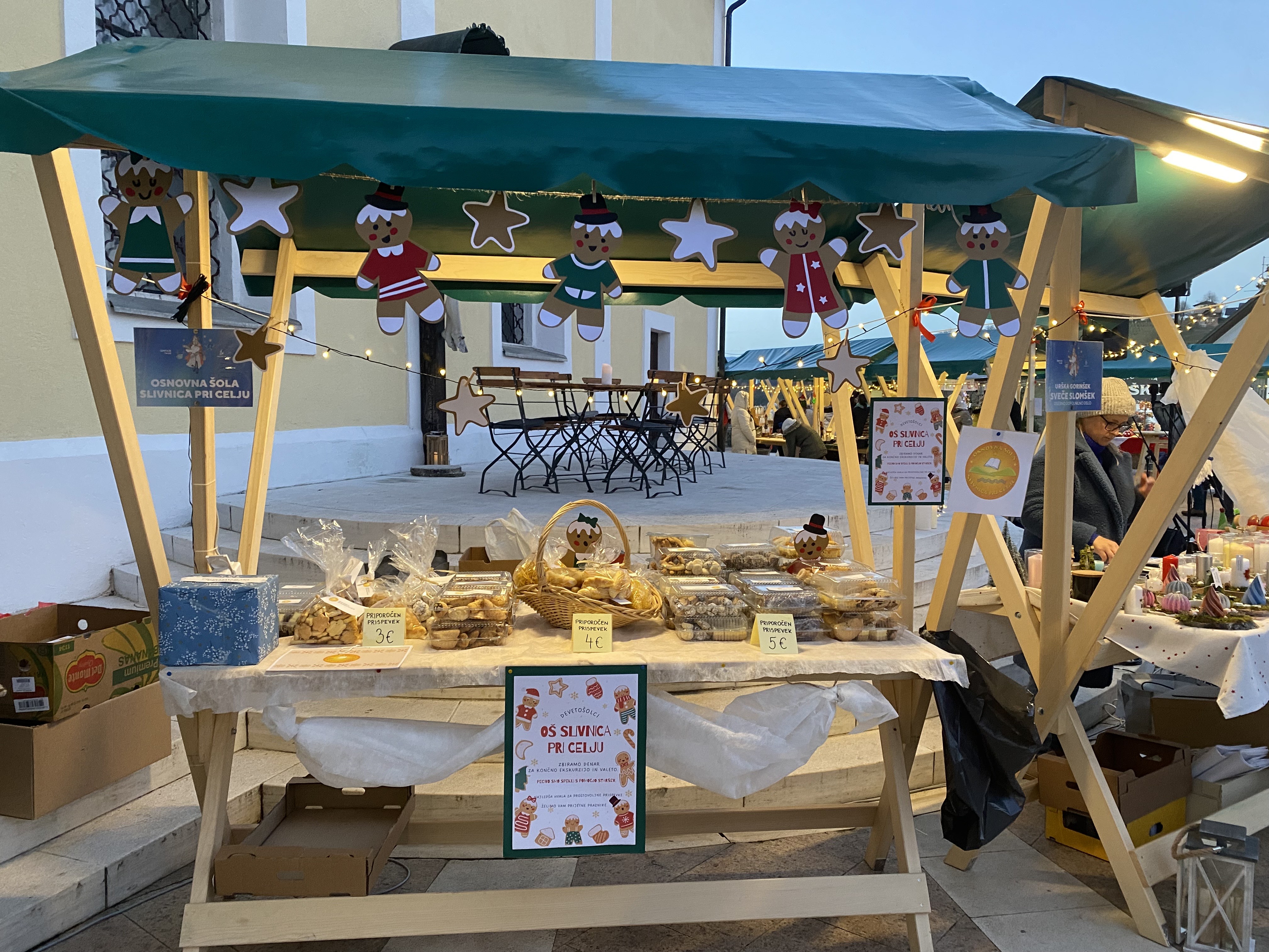 5. decembra 2024 je v Šentjurju na Zgornjem trgu potekal Miklavžev sejem. Udeležili so se ga tudi naši devetošolci. S pomočjo staršev so napekli pecivo in ga ponujali na stojnici, ki so jo praznično okrasili. Prostovoljno zbrane prispevke bodo namenili za končni izlet in valeto. Katja, Leja in Brina so povedale, da je bilo na sejmu precej mrzlo, a se je splačalo malo potrpeti, saj so zbrali kar nekaj sredstev. V imenu vseh devetošolcev se zahvaljujejo vsem obiskovalcem za obisk in prispevke. Stojnico je obiskala tudi ga. ravnateljica.