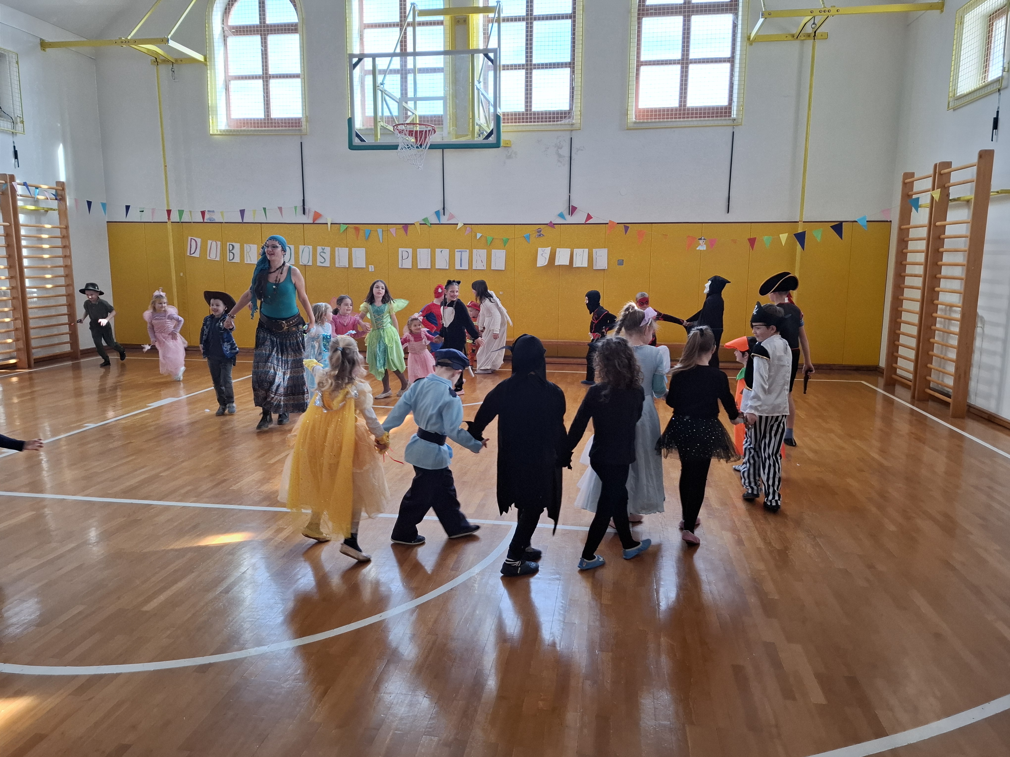 Na pustni torek, 4. marca 2025, je bilo na naši podružnični šoli prav posebno vzdušje – učenci in učiteljice smo se za en dan spremenili v najrazličnejše pustne like ter se prepustili norčavosti, plesu in zabavi.