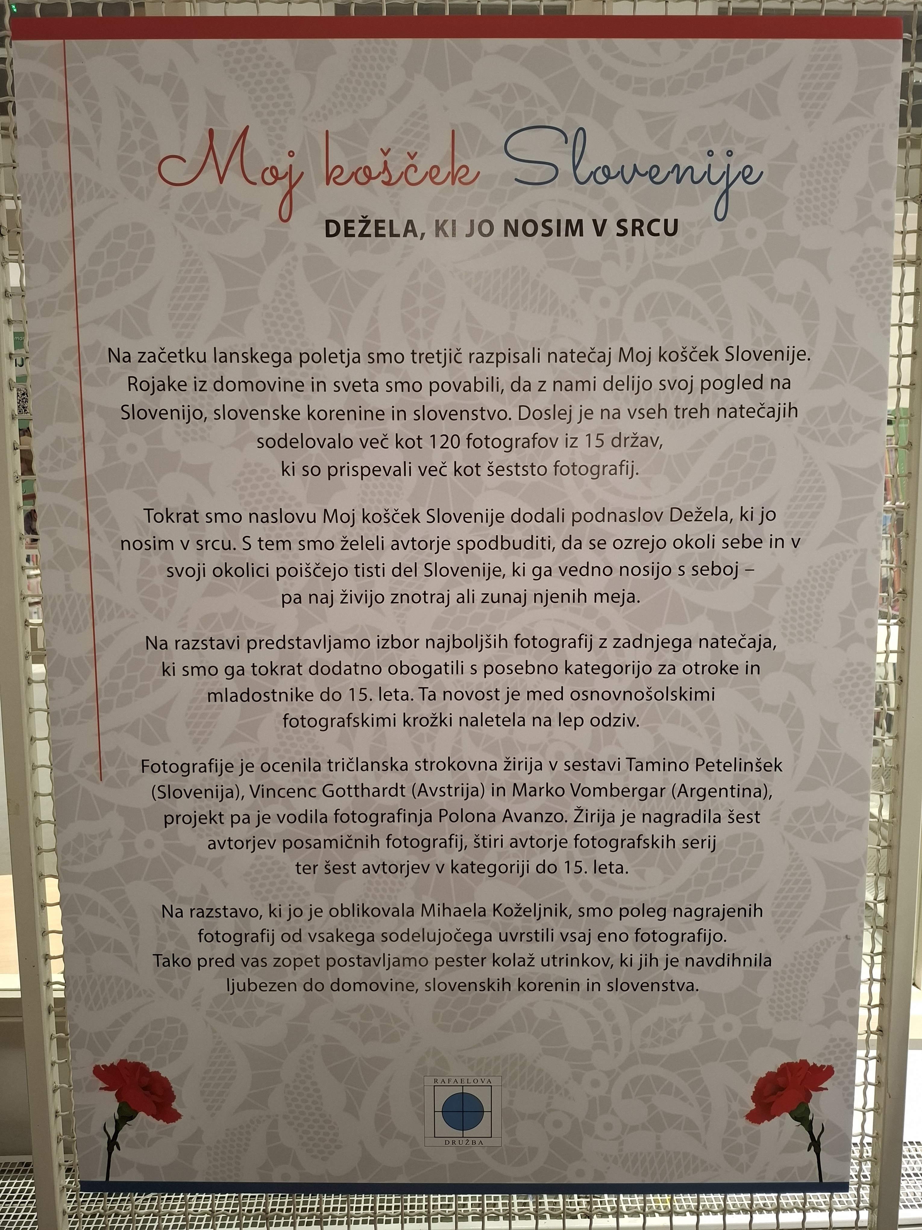 Naši učenci so pod mentorstvom učiteljice Martine Kosaber Gril ustvarjali fotografije za fotografski natečaj “Moj košček Slovenije”, ki ga je organizirala Rafaelova družba – ustanova za pomoč slovenskim izseljencem in zdomcem.