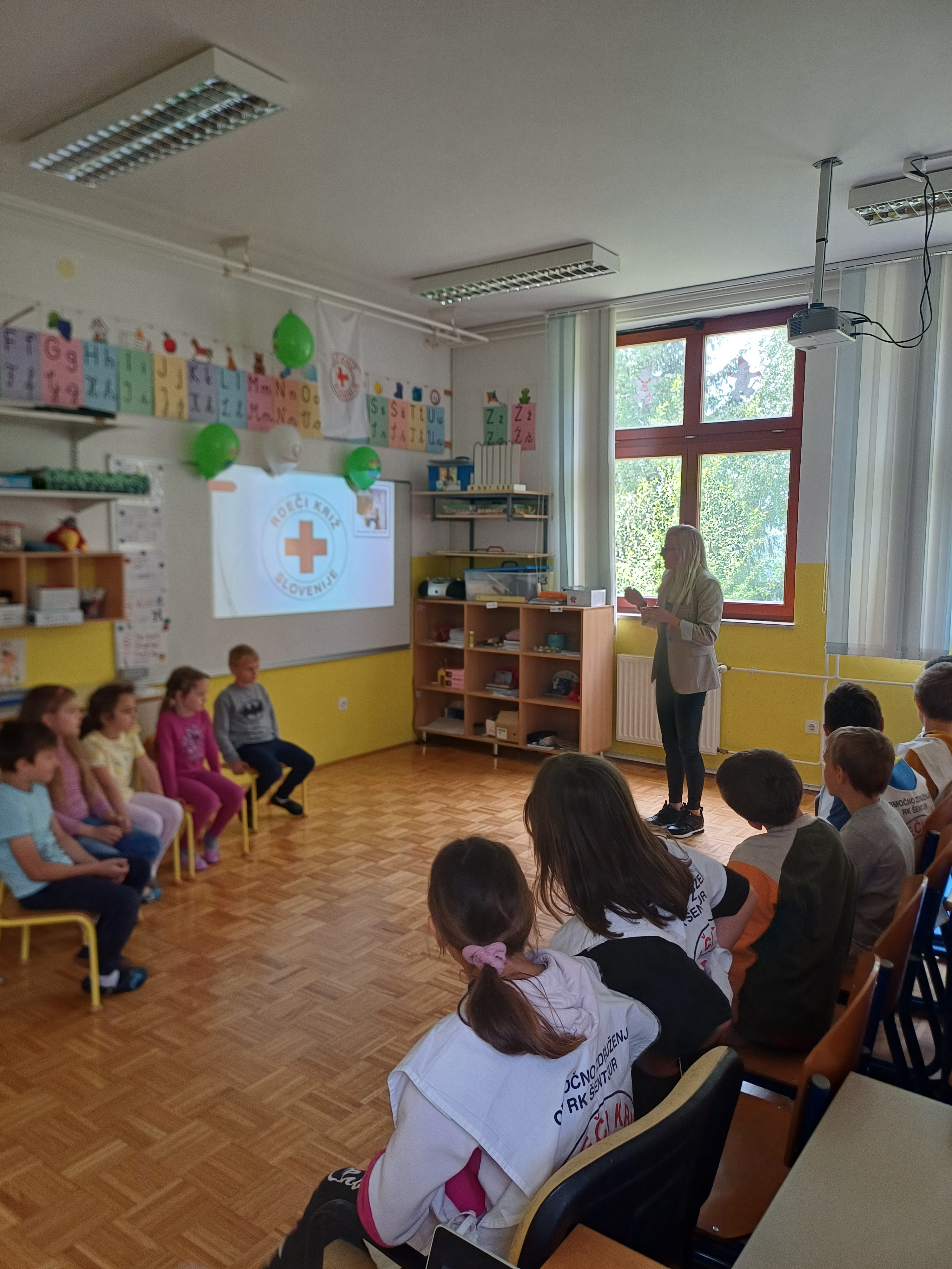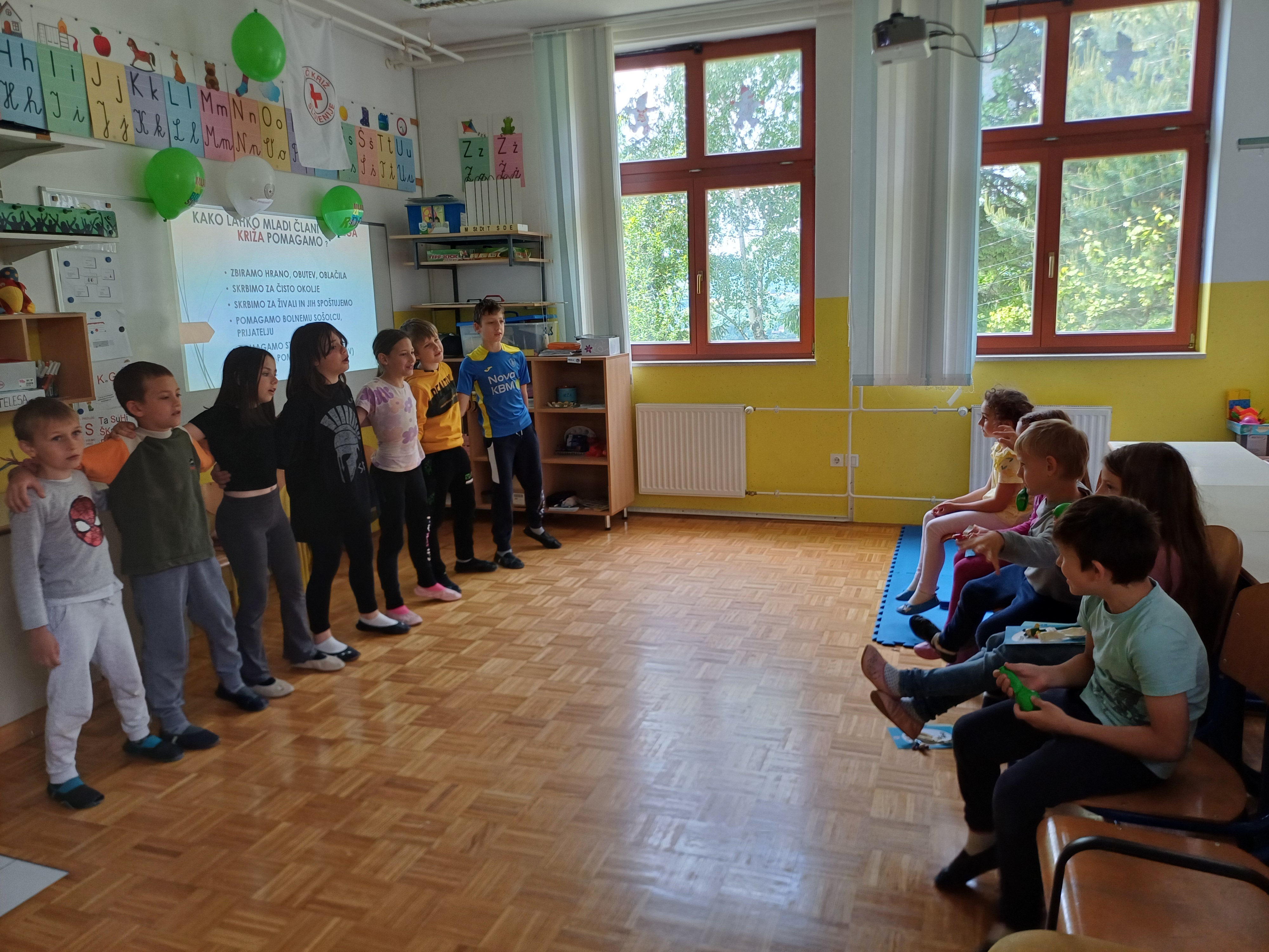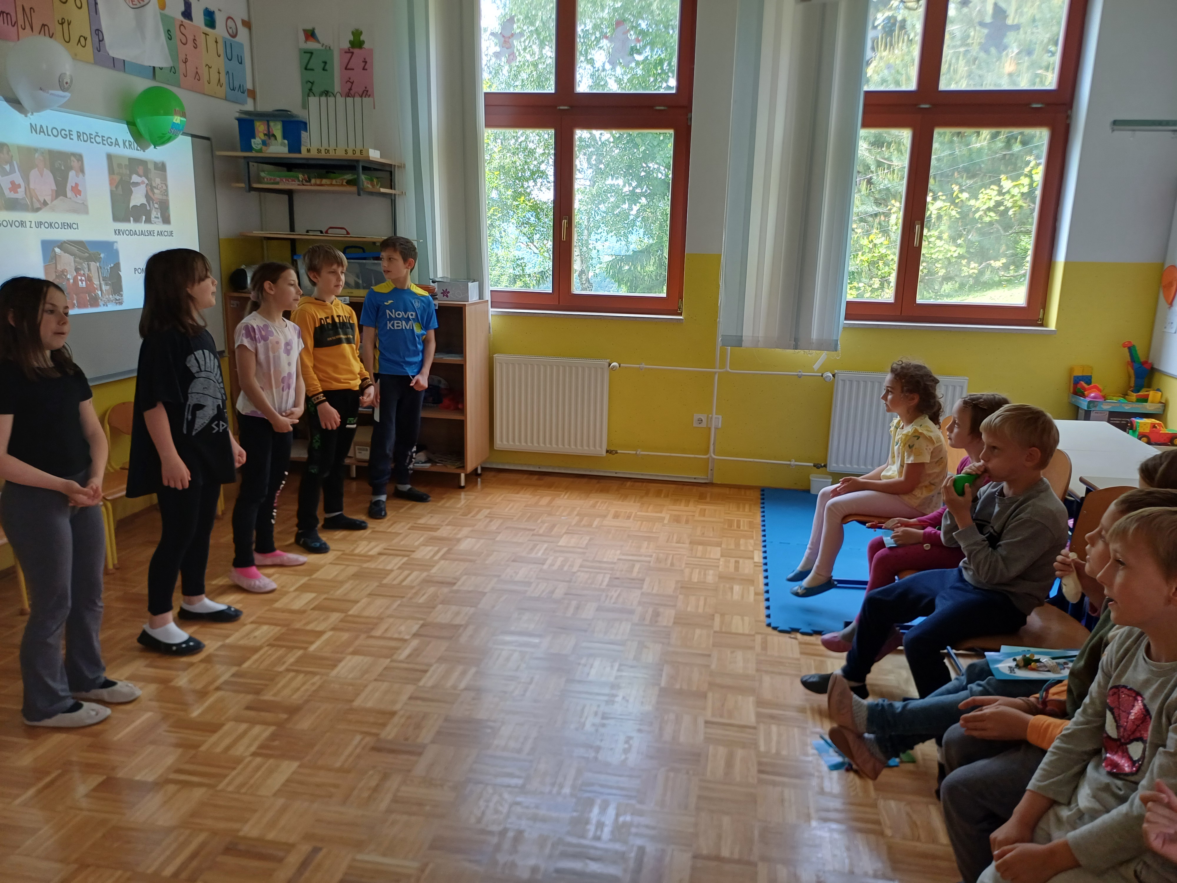 Učiteljica Mateja jim je predstavila delovanje organizacije Rdeči križ ter številne dejavnosti, s katerimi pomagajo ljudem v stiski. Da bi jim dan ostal v lepem spominu, so jim tretješolci in četrtošolca pod mentorstvom učiteljice pripravili prijeten kulturni program, ki je vključeval petje in ples.