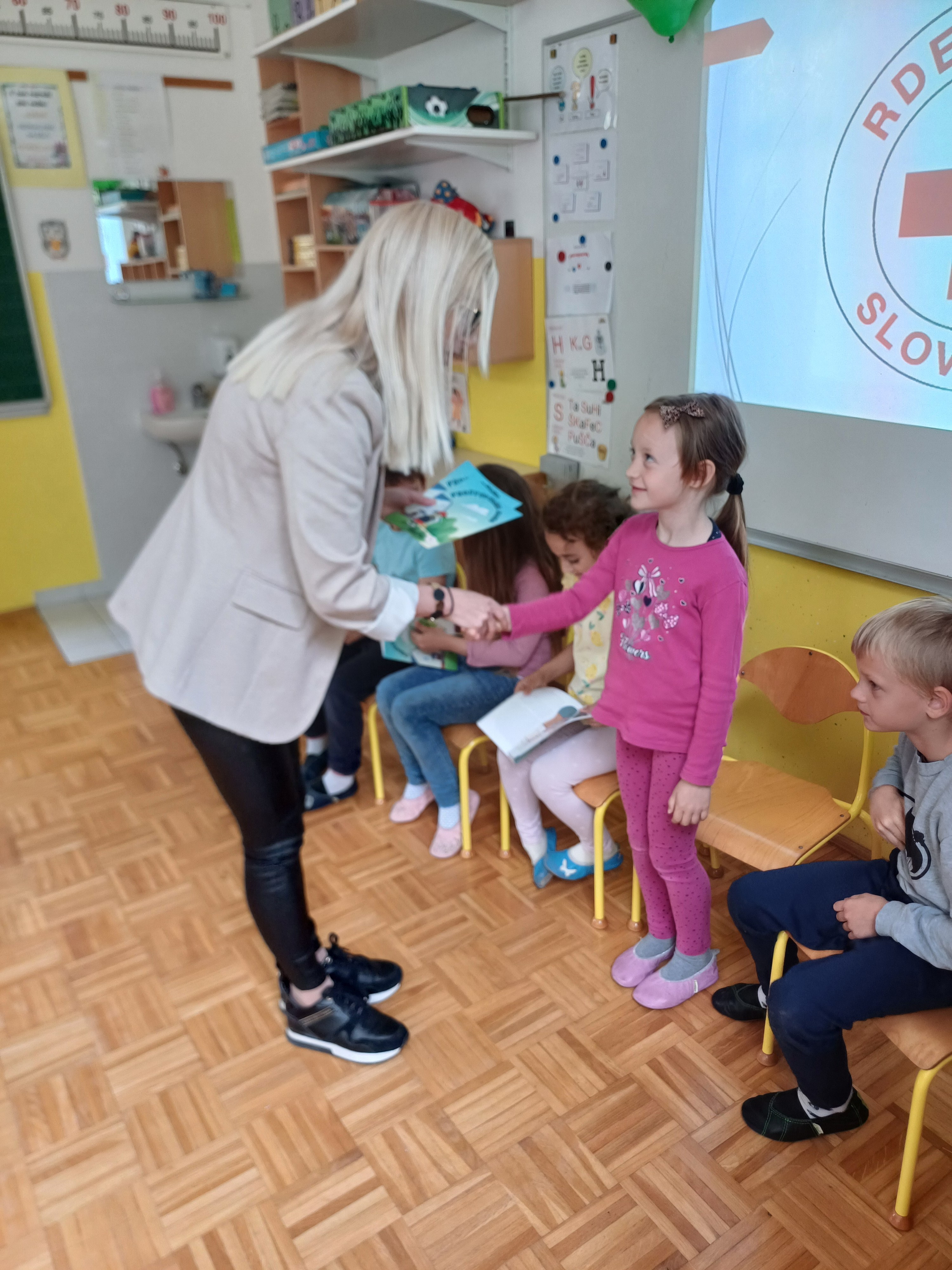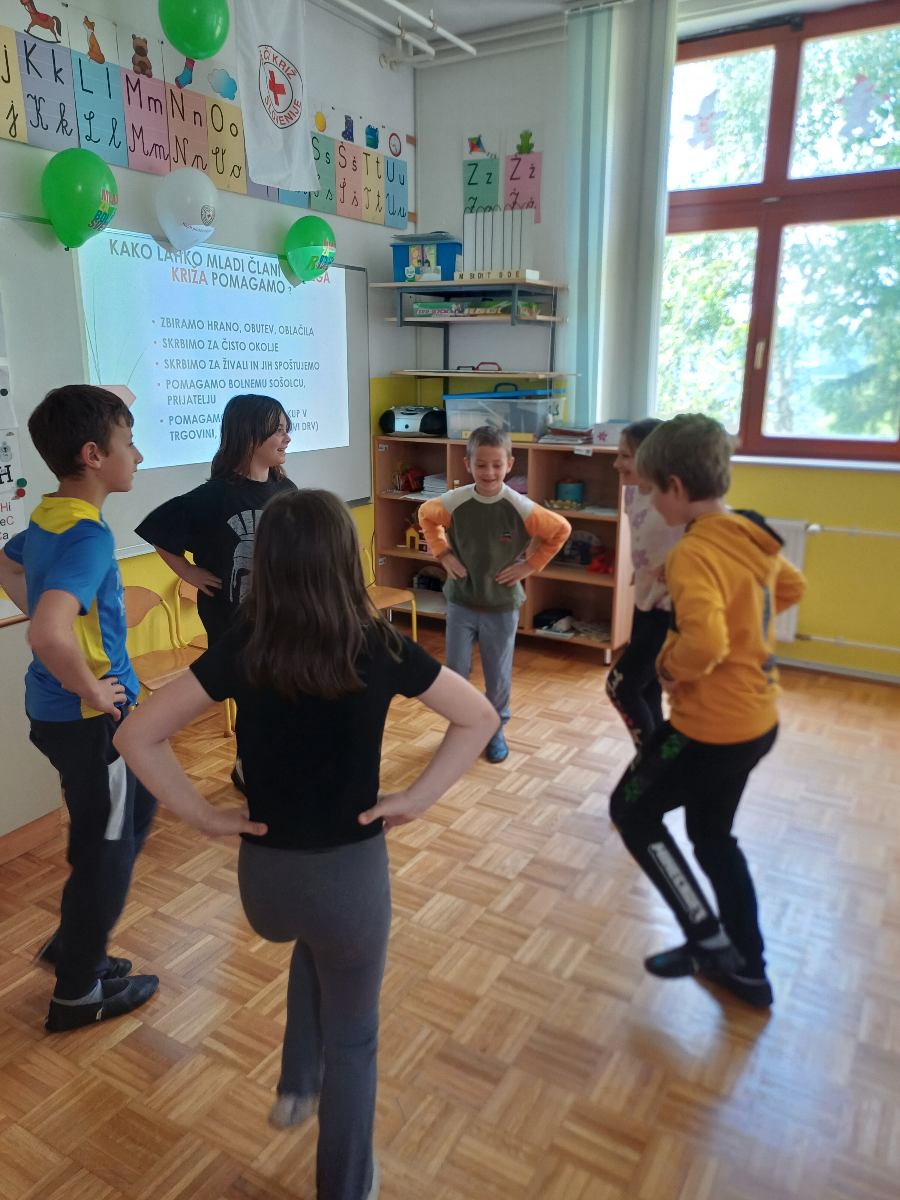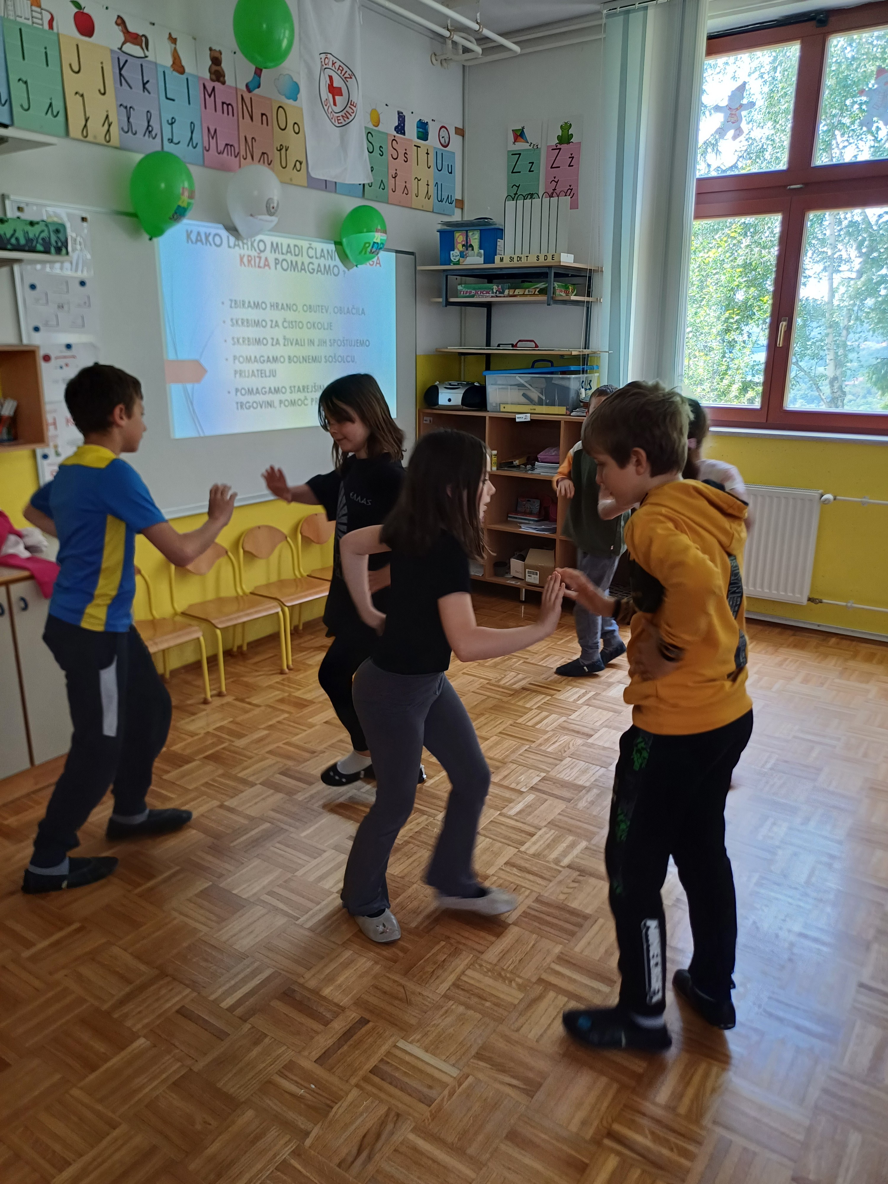 Učiteljica Mateja jim je predstavila delovanje organizacije Rdeči križ ter številne dejavnosti, s katerimi pomagajo ljudem v stiski. Da bi jim dan ostal v lepem spominu, so jim tretješolci in četrtošolca pod mentorstvom učiteljice pripravili prijeten kulturni program, ki je vključeval petje in ples.