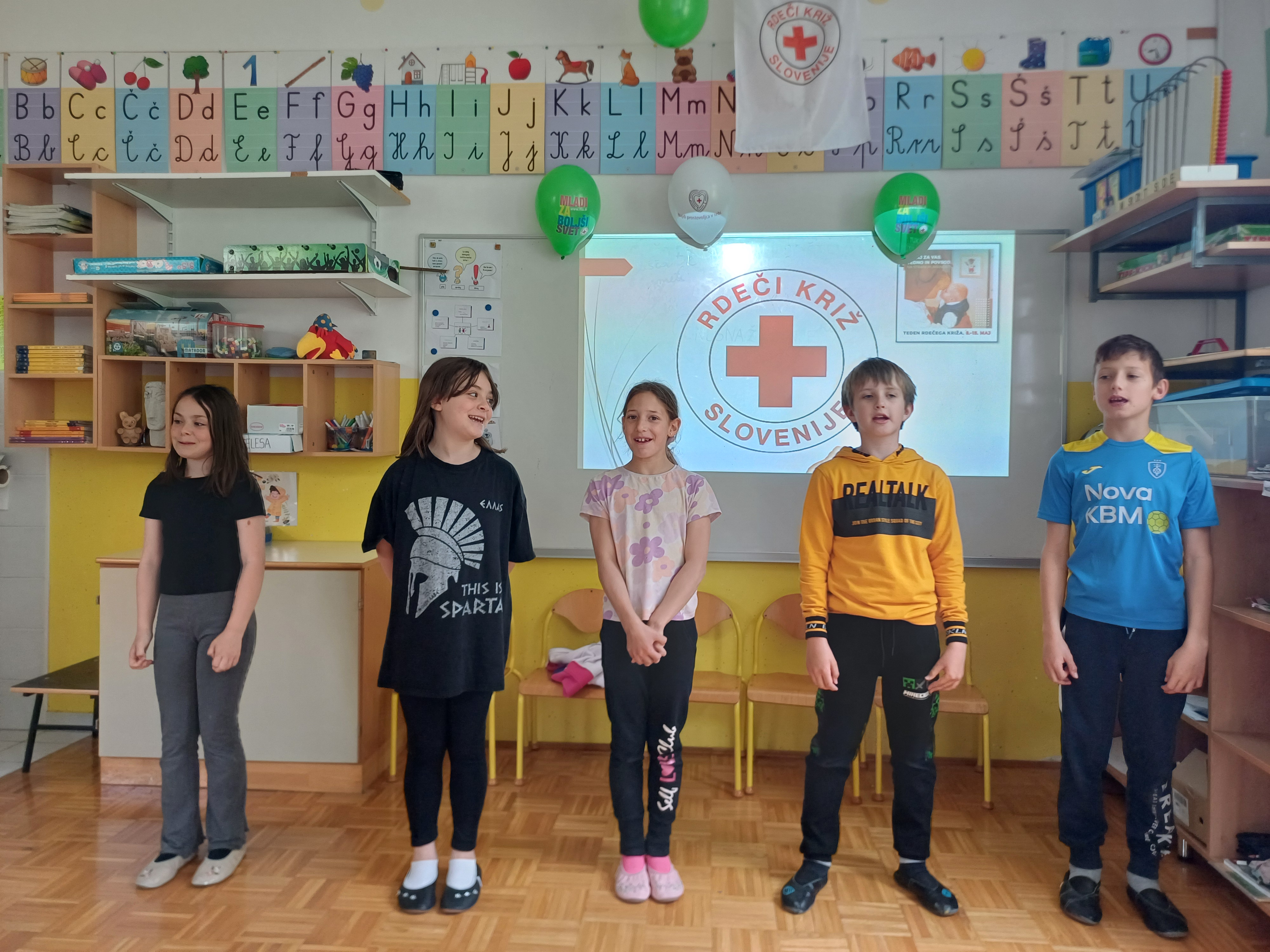 V tednu Rdečega križa smo s ponosom med mlade člane sprejeli prvošolce: Urha, Glorijo, Karin, Manco in Filipa.