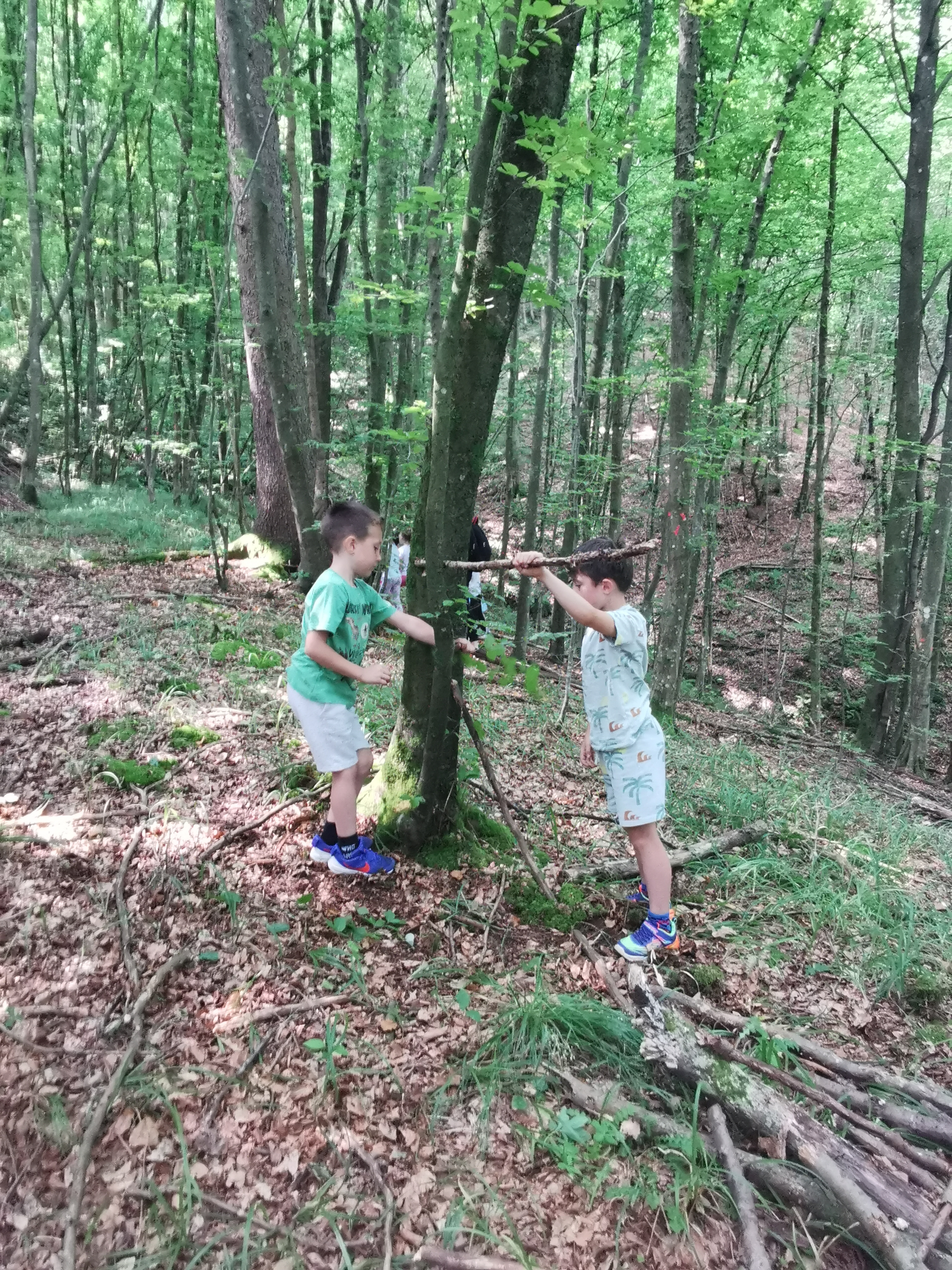 Naslednji dan, v sredo 11.6. 2025, pa so imeli tehniški dan, kjer so spoznavali gozd, kot življenjski prostor mnogih rastlin in živali. Gozd pa so doživeli tudi kot prostor v katerem se lahko sprostiš, nadihaš svežega zraka, se prepustiš domišljiji in ustvarjalnosti. Vas zanima, kako ustvarjalni so bili? Poglejte v galerijo.
