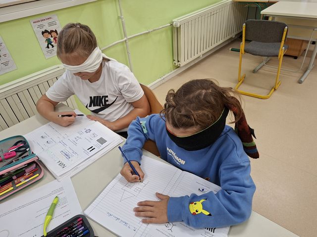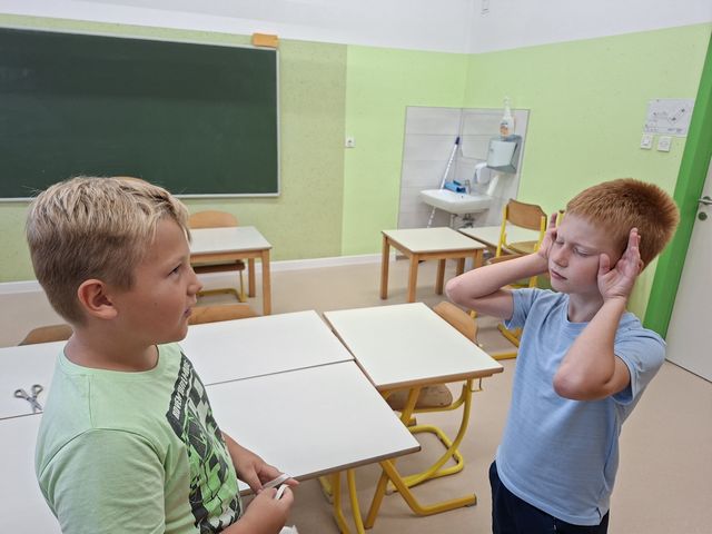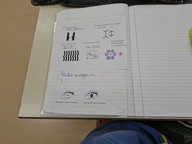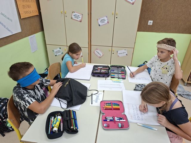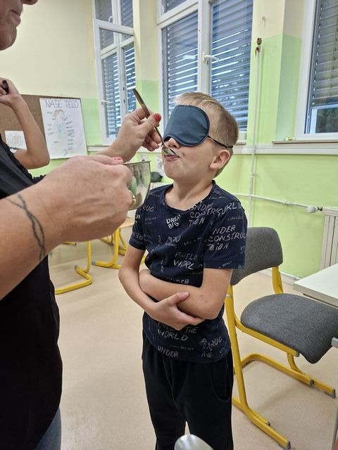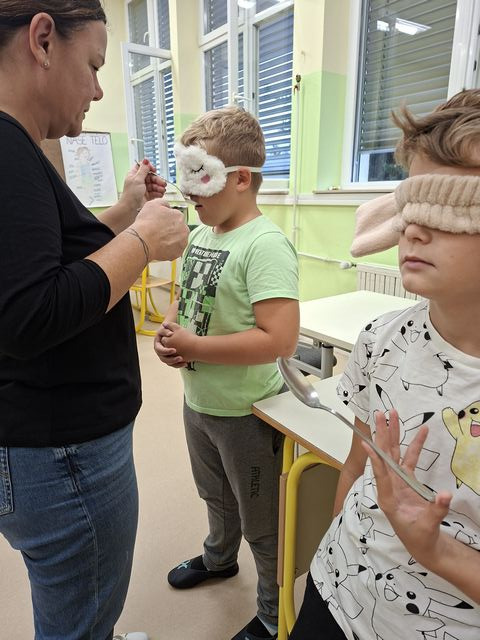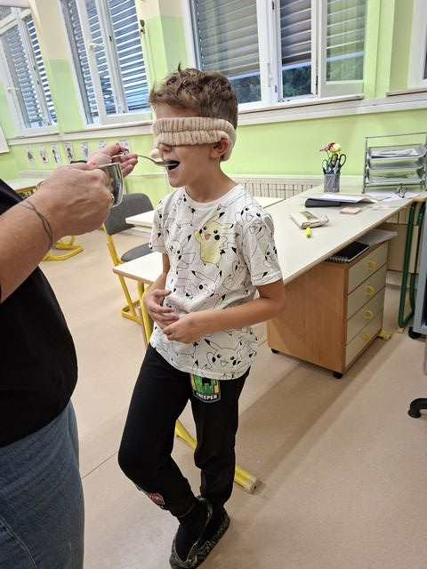 Četrtošolci so na naravoslovnem dnevu zaznavali s čutili. Delo je bilo organizirano po postajah, na vsaki postaji o enem čutilu. Z zaprtimi očmi so prepoznavali okuse in vonje, ugotavljali ali so jim prijetni ali neprijetni. Poslušali so različne zvoke, ugotavljali, kaj se z zvokom dogaja, če krajšamo slamico, v katero pihamo. Z zaprtimi očmi so tipali predmet in ga sošolcem opisovali tako, da so ga le-ti lahko narisali. Prav nič enostavno ni bilo. Opazovali so, kaj se dogaja z zenico pri malo in veliko svetlobe, ugotavljali, da ni nič kaj enostavno risati, če ne vidiš.  En drugemu so si risali in pisali po hrbtu in se pri tem zelo zabavali. Pošteno so se namučili, ko so opazovali sličice – optične prevare in odgovarjali na vprašanja. Na karton so narisali kletko in ptička. Pri dovolj spretnih prstkih je ptiček čudežno skočil v kletko. Dogajalo se je še marsikaj. Dopoldne je kar prehitro minilo in učenci so s prijetnimi vtisi zapustili učilnico.