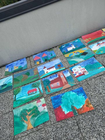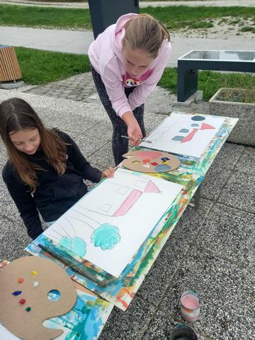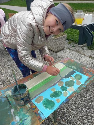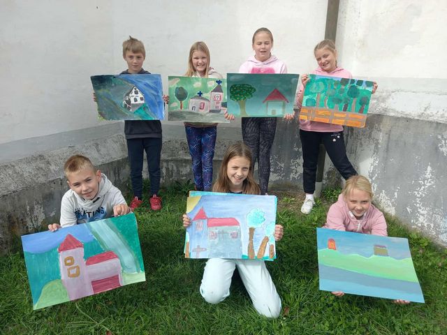 Nato se je skupina podala v naravo, kjer so učenci z akrilnimi barvami na platna upodabljali krajino ter značilni cerkvi, ki kraljujeta na Tinskem. Pod strokovnim vodstvom mentorja so se naučili novih tehnik slikanja, razvijali svojo domišljijo in se ob tem sproščeno družili.