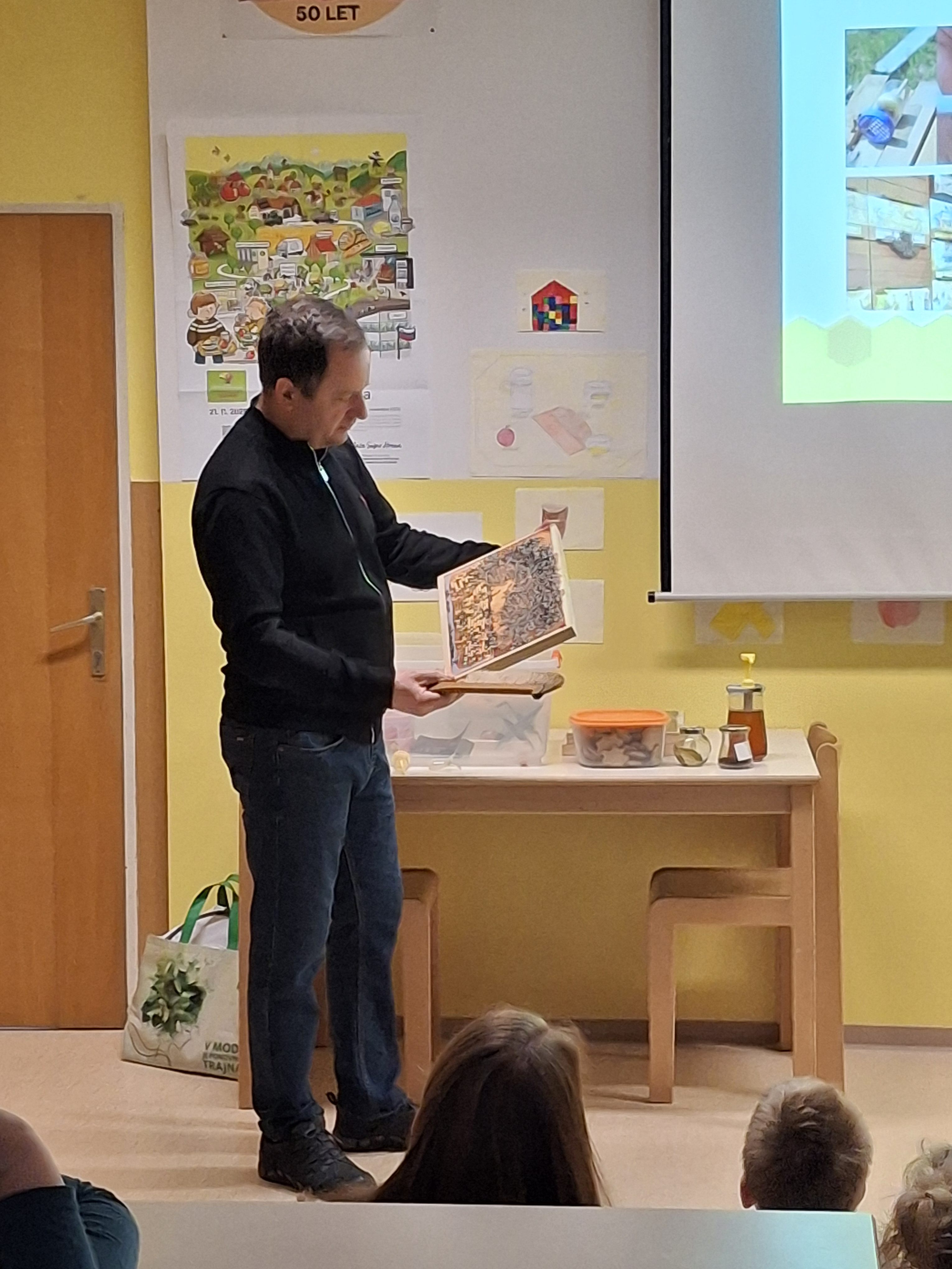 Dan zdrave hrane s slovenskim tradicionalnim zajtrkom smo na naši šoli pričeli že v torek, 18.11. 2025, ko nas je obiskal čebelar, g. Anton Jug, predsednik Čebelarskega društva Šentjur. Učencem in otrokom iz vrtca je povedal in pokazal veliko zanimivega o življenju in delu naših pridnih čebelic.