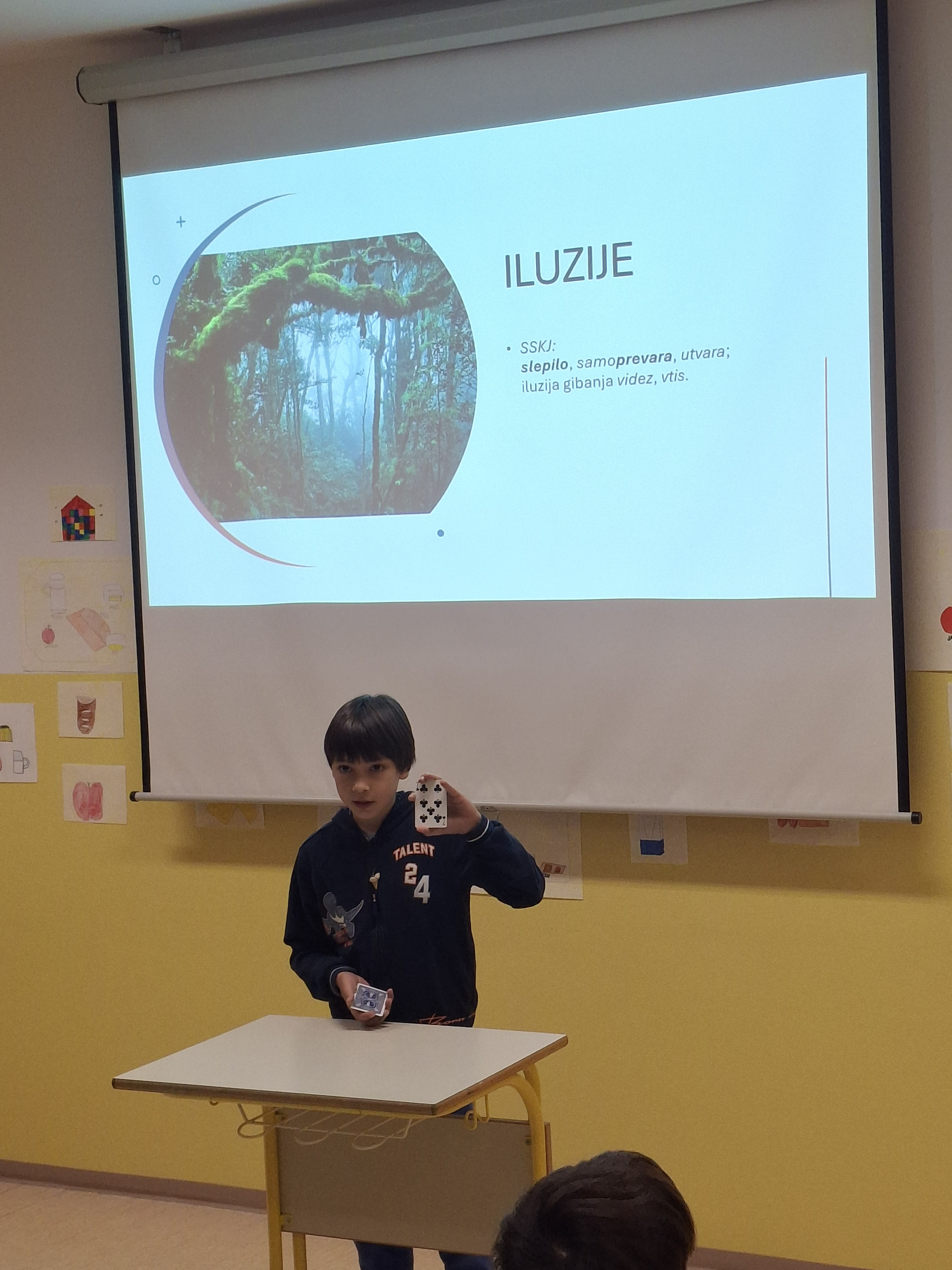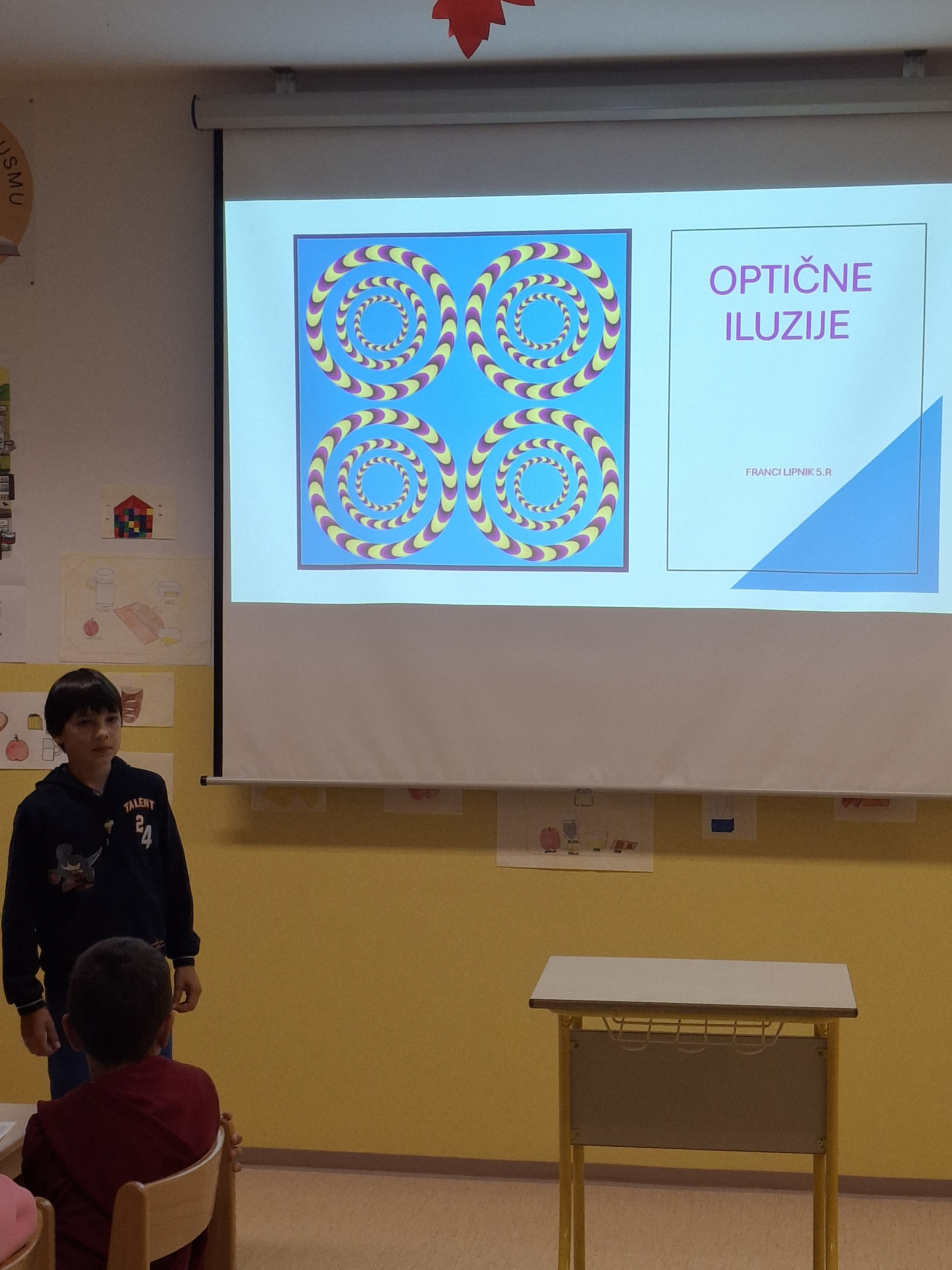 Nato pa nam je učenec 5. razreda Franci Lipnik predstavil zanimivosti o obtičnih iluzijah. Vsi smo ga z zanimanjem poslušali in nekatere stvari praktično tudi preizkusili.