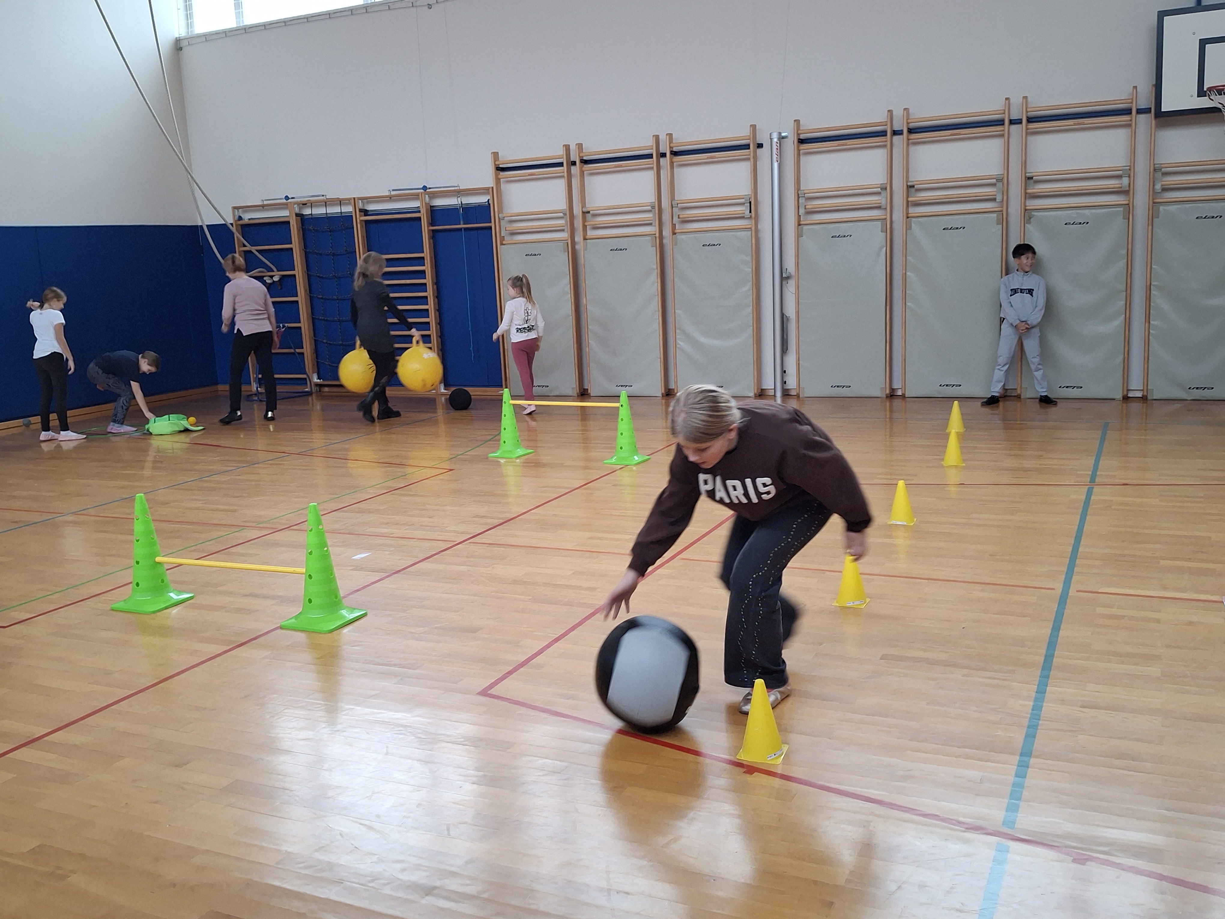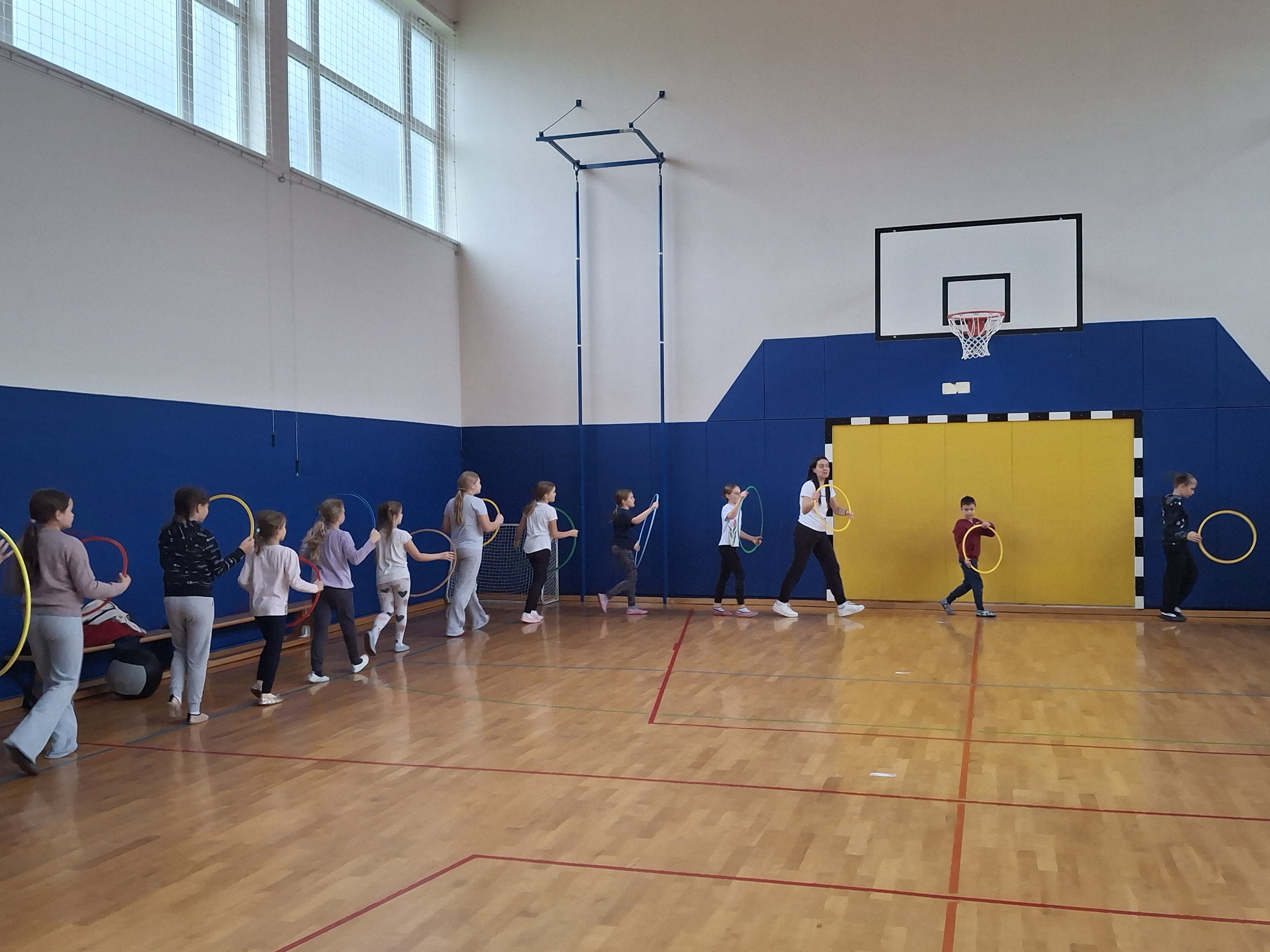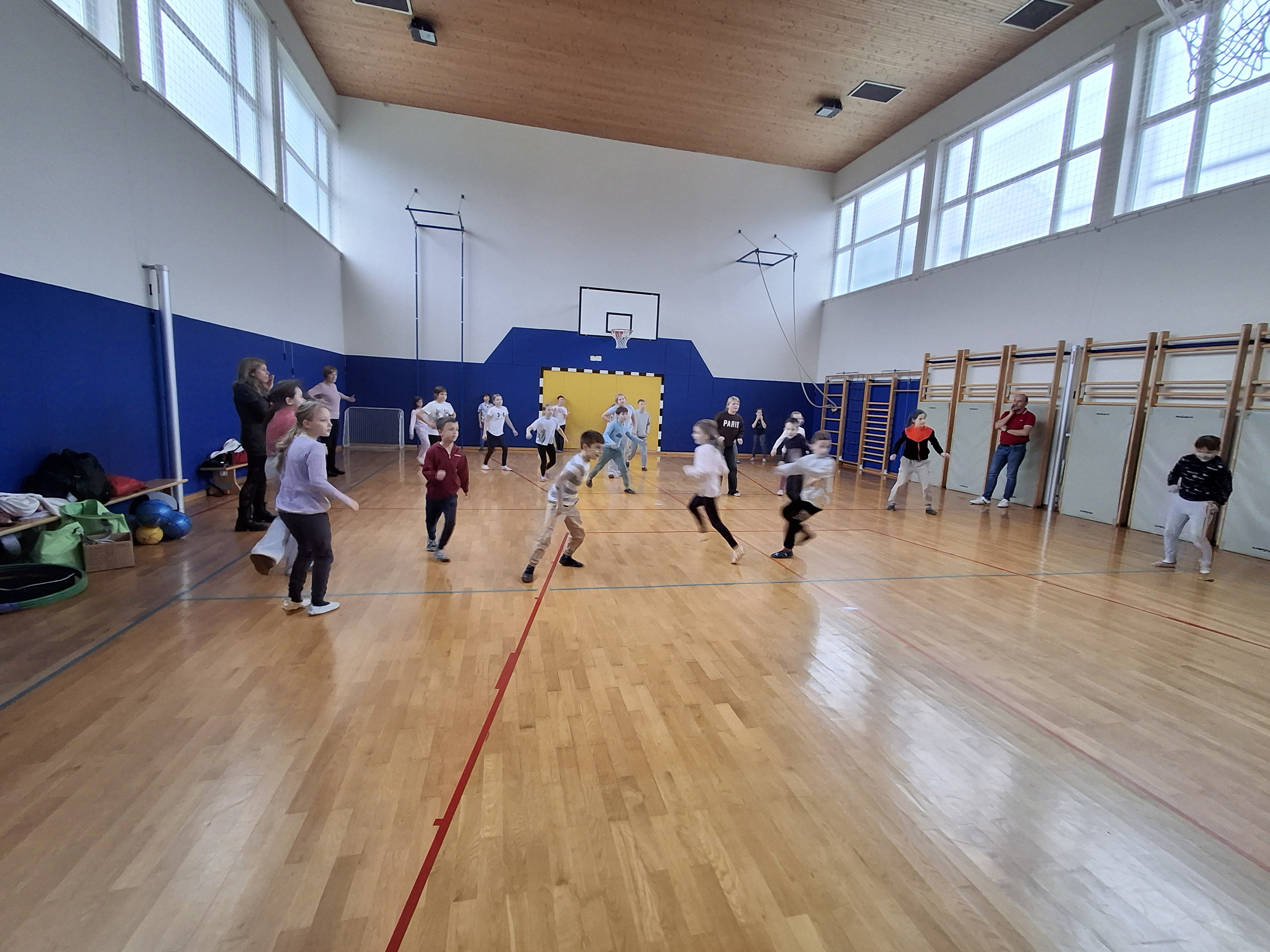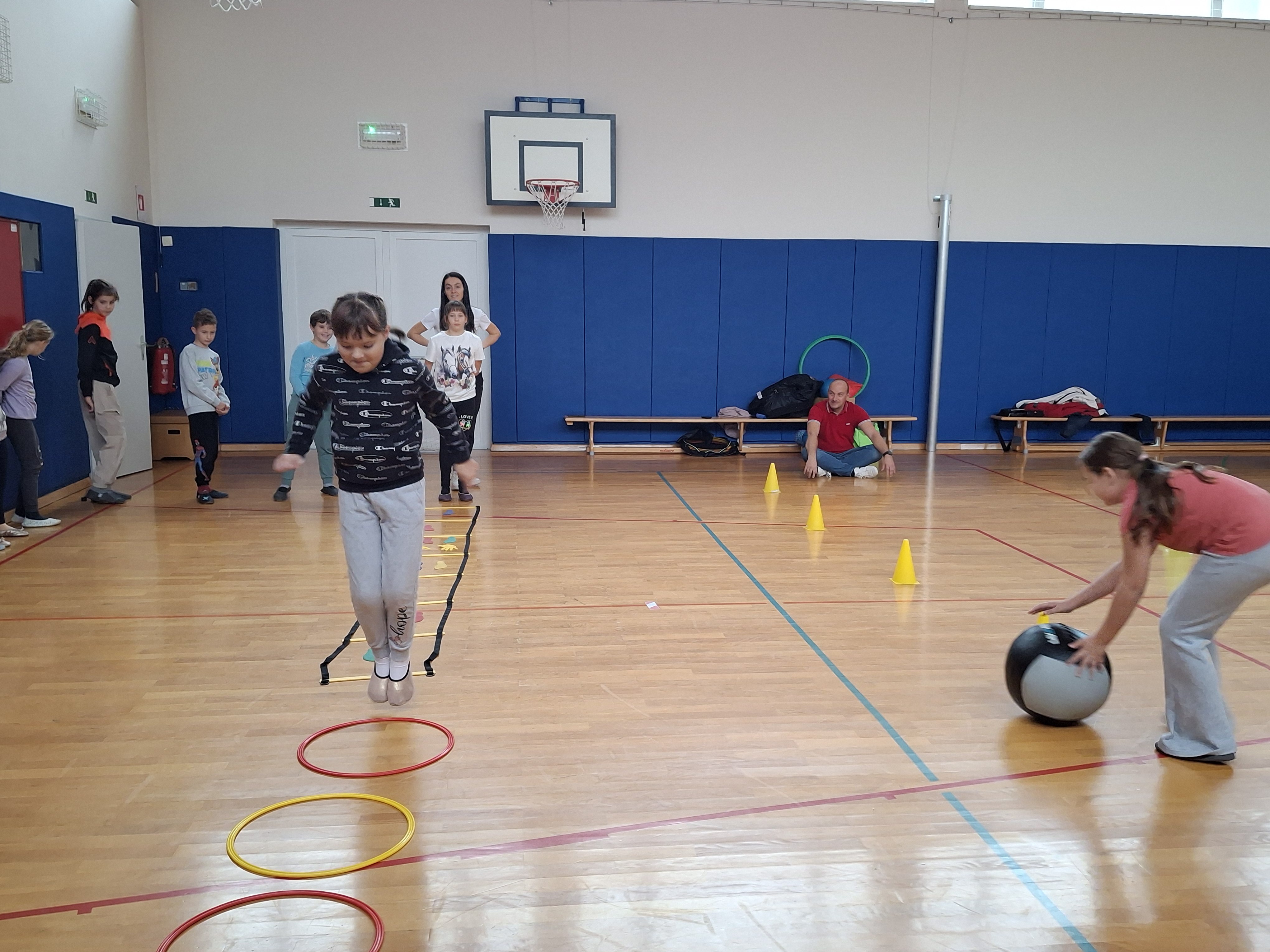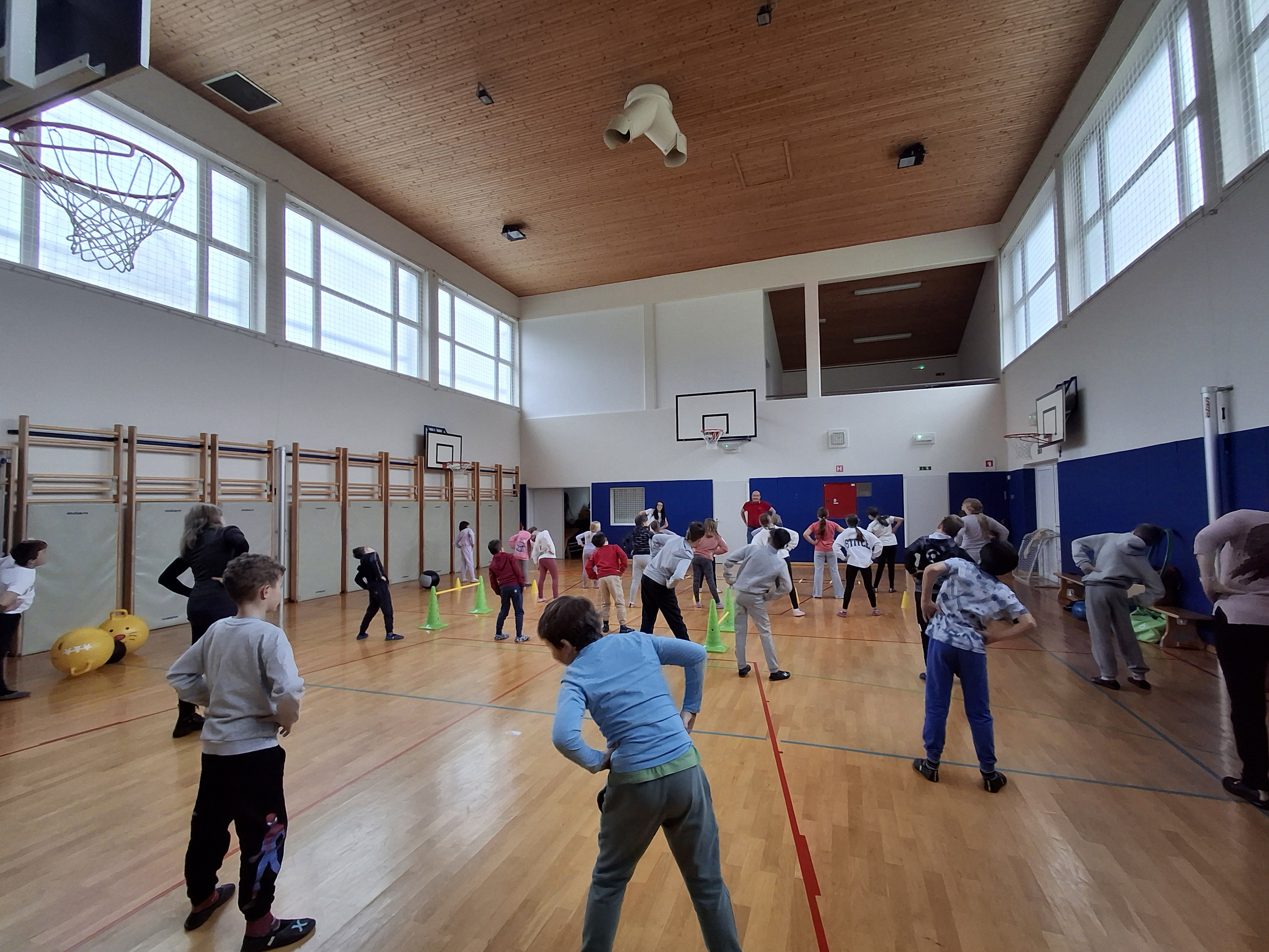 Dan smo nadaljevali v telovadnici s športom za zdravje, ki sta ga izvedla g. Jernej in ga. Lucija iz CKZ Šentjur. Najprej smo se dobro razgibali, potem pa izvajali gibalne aktivnosti z različnimi športnimi rekviziti. Zelo smo se zabavali.