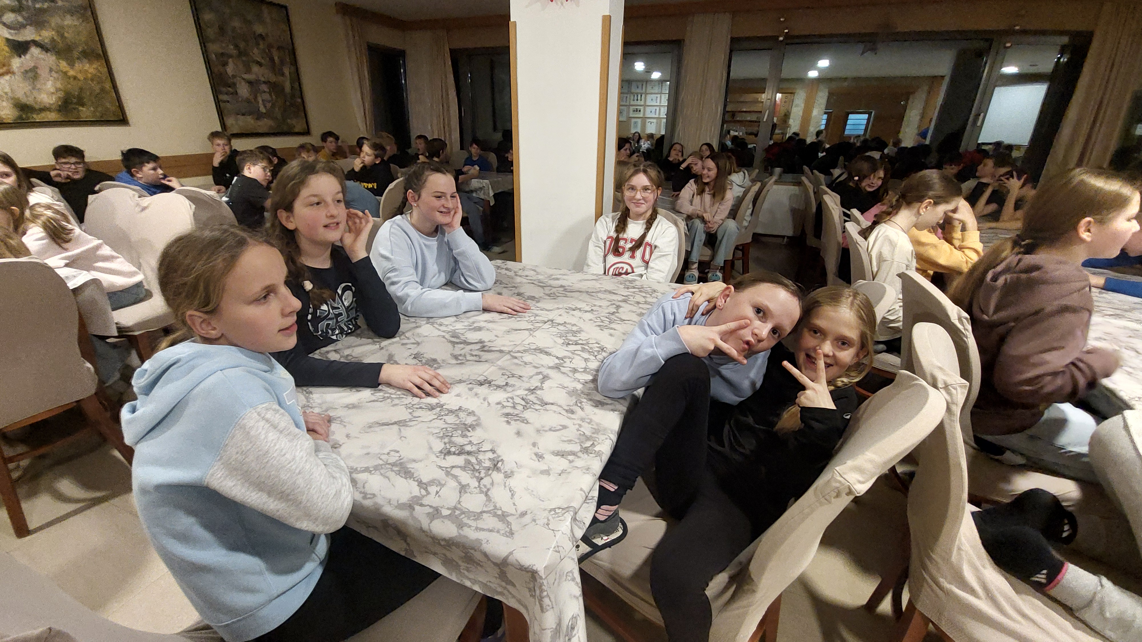 Areško Pohorje nas je pričakalo v zimski idili. Po namestitvi v sobah, smo imeli kosilo, potem pa smo se odpeljali na smučišče, kjer smo preverili smučarsko znanje in se razdelili v skupine. Po popoldanski malici smo toplo oblečeni in z lučkami odšli na nočni pohod, večer pa smo zaključili s spoznavanjem vesolja.
