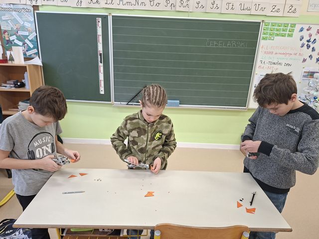 MATIAS: Fino mi je bilo kovičenje luknjic, merjenje, lepljenje, raztegovanje gumice. Težko mi je bilo žagati, jezen pa sem bil, ker se moj voziček ni premikal.