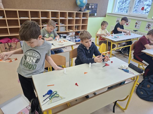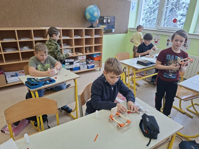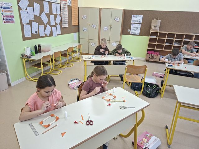 Les in lepenka sta bila glavna materiala, s katerima so četrtošolci na tehniškem dnevu ustvarjali svoje prve »inženirske« projekte. Njihova naloga je bila izdelati voziček na notranji pogon – in pri tem so se naučili marsikaj novega.