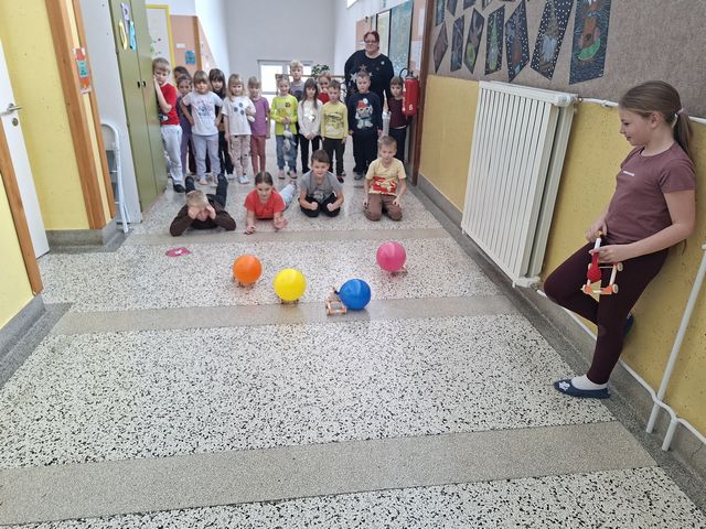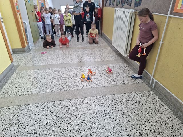 Ko so vozički končno dobili še balon, je bil projekt zaključen: nastal je pravi mali stroj na notranji pogon. Učenci so svoje izdelke ponosno preizkusili, na koncu pa pripravili še pravo dirko. Vsi smo z navdušenjem opazovali, smeh je odmeval po hodniku, vsak zase pa se je po tiho spraševal: čigav voziček bo odpeljal najdlje?