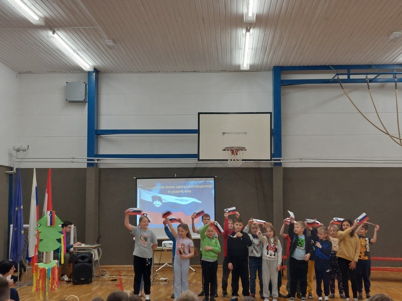 V petek, 25. 4. 2025, smo obeležili dva zelo pomembna prihajajoča praznika – dan upora proti okupatorju in praznik dela. Na proslavi so se zvrstile raznolike točke, ki so jih pripravili učenci in učitelji naše šole. Kulturni program je bil obarvan s pesmijo, plesom, dramskim prizorom (skečem), recitacijo in krajšim filmčkom.