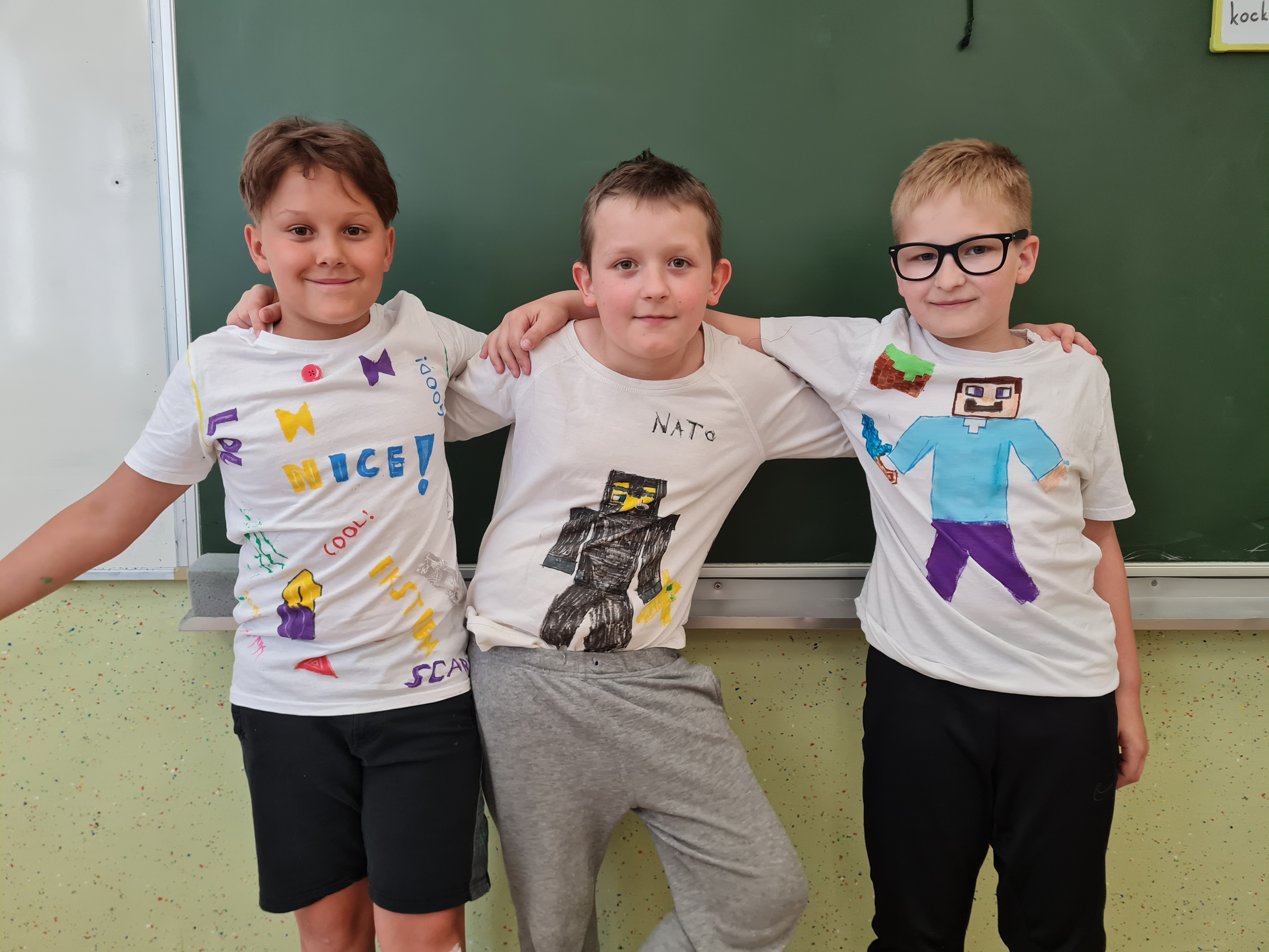 Petošolci matične šole smo minuli petek pri gospodinjstvu plemenitili tekstil. V šolo smo prinesli majice s kratkimi rokavi ter različne tekstilne barve, flomastre, našitke, kose blaga, gumbe vseh vrst in oblik, šiviljske pripomočke … in si izdelali unikatne poletne majice, na katere smo bili zelo ponosni.