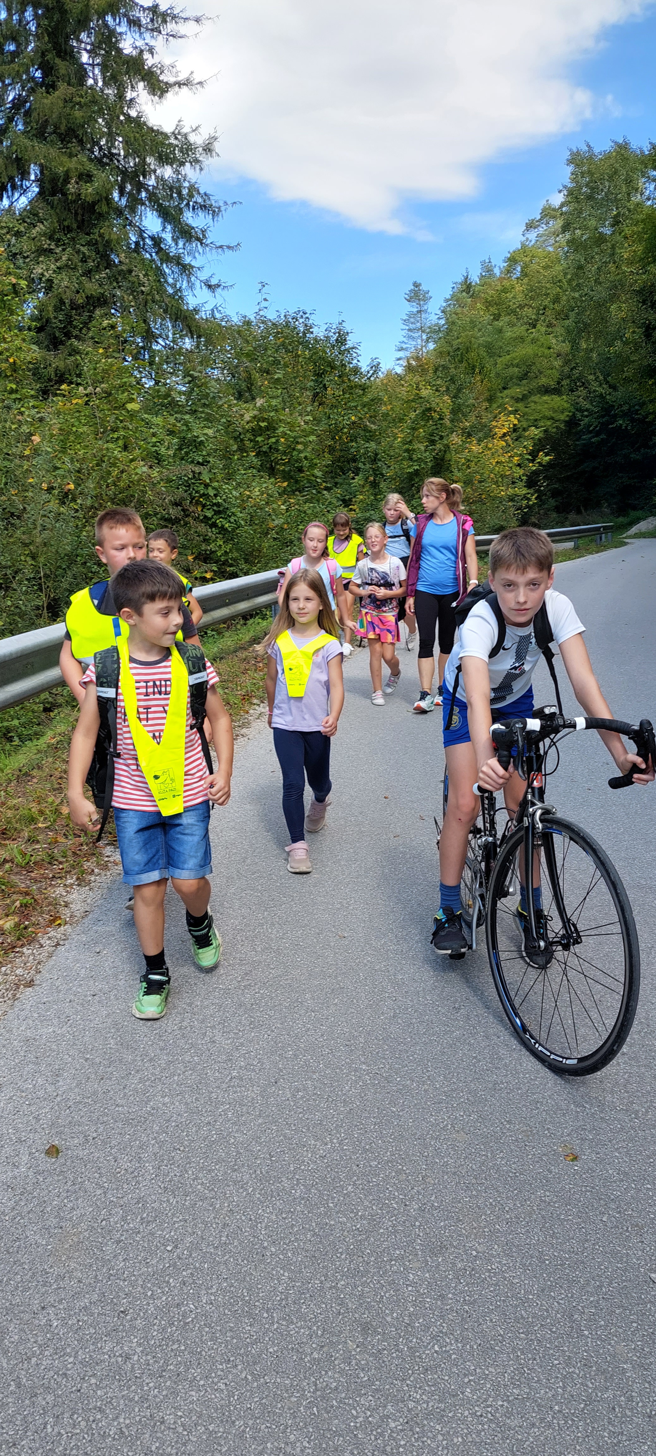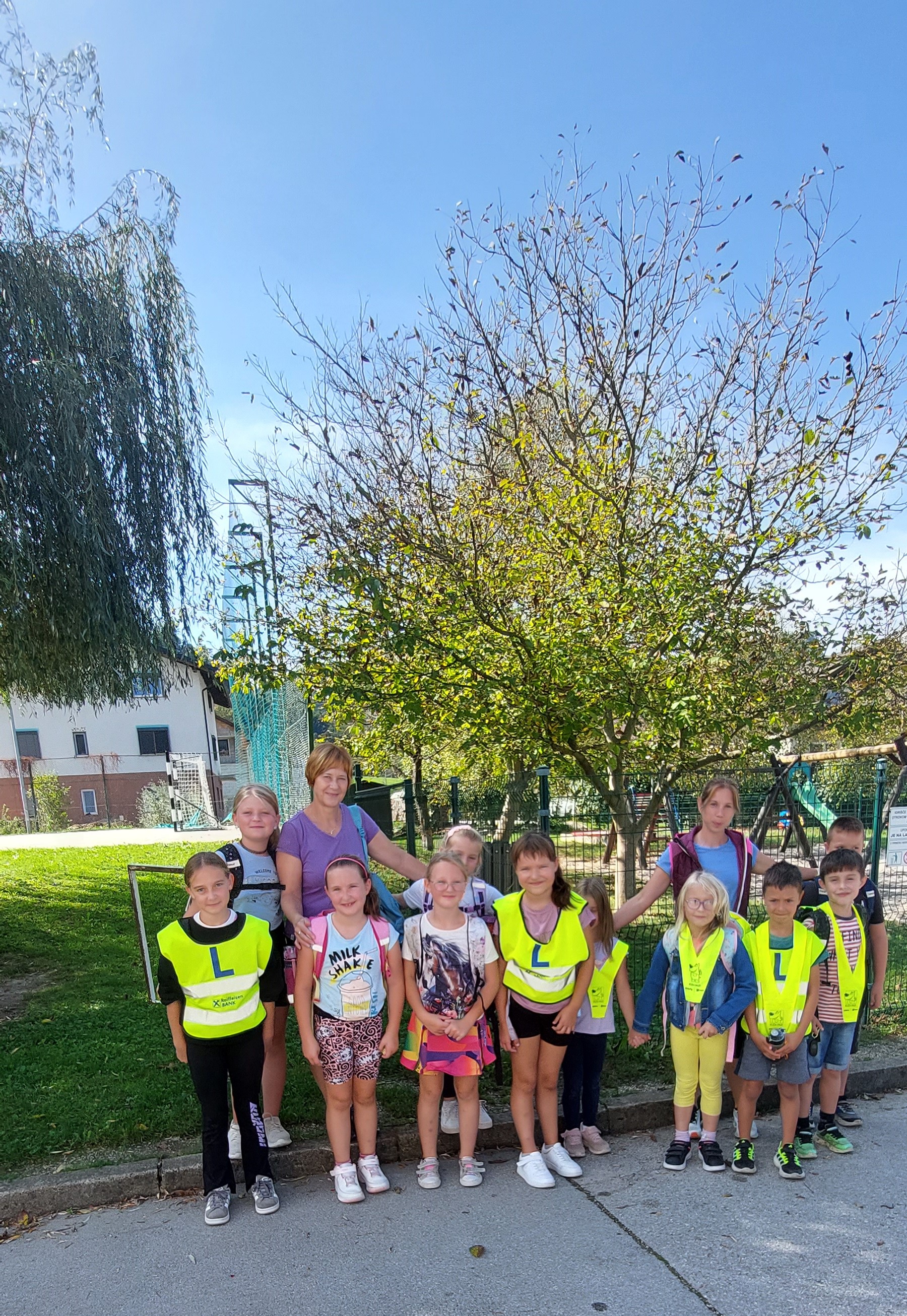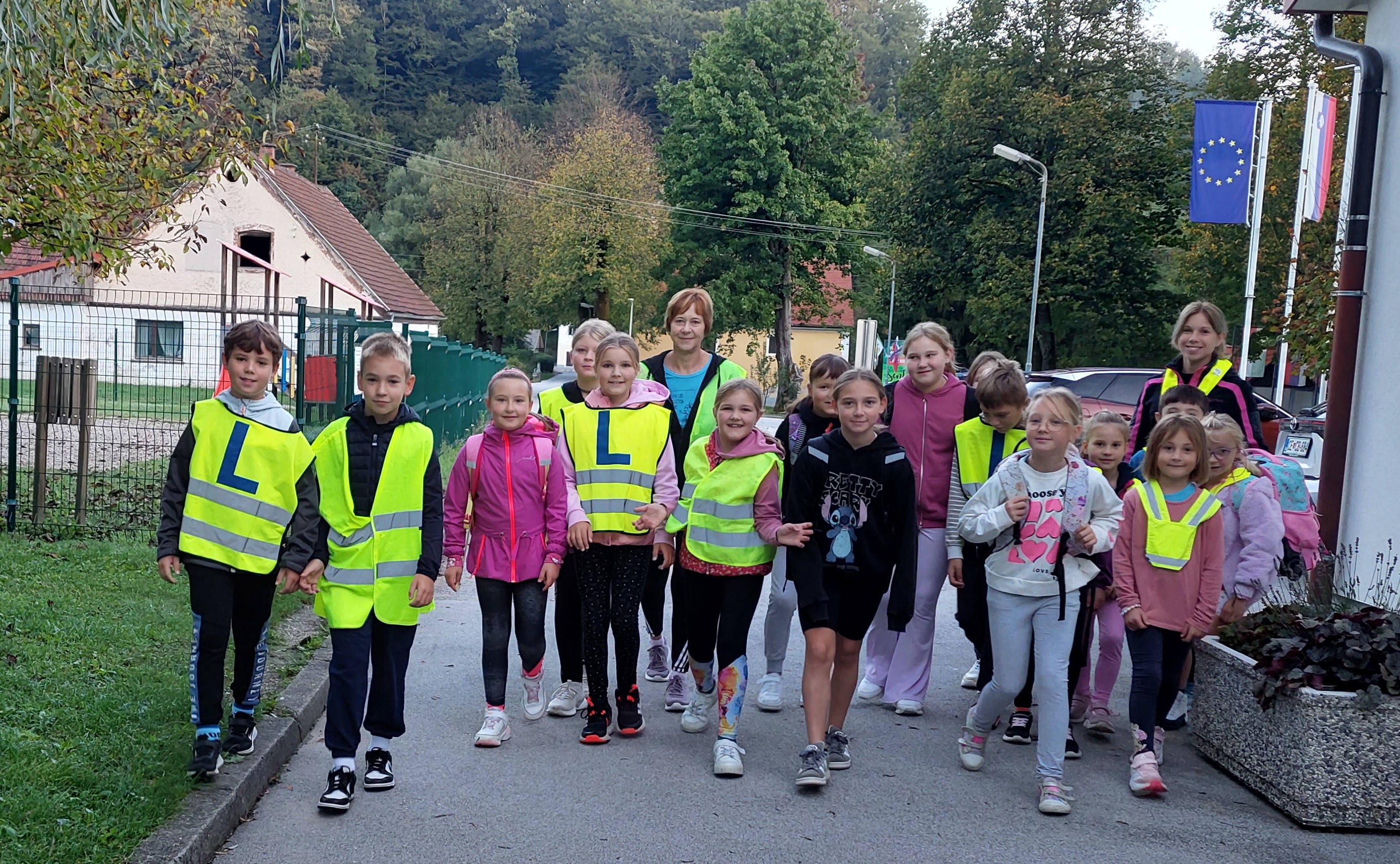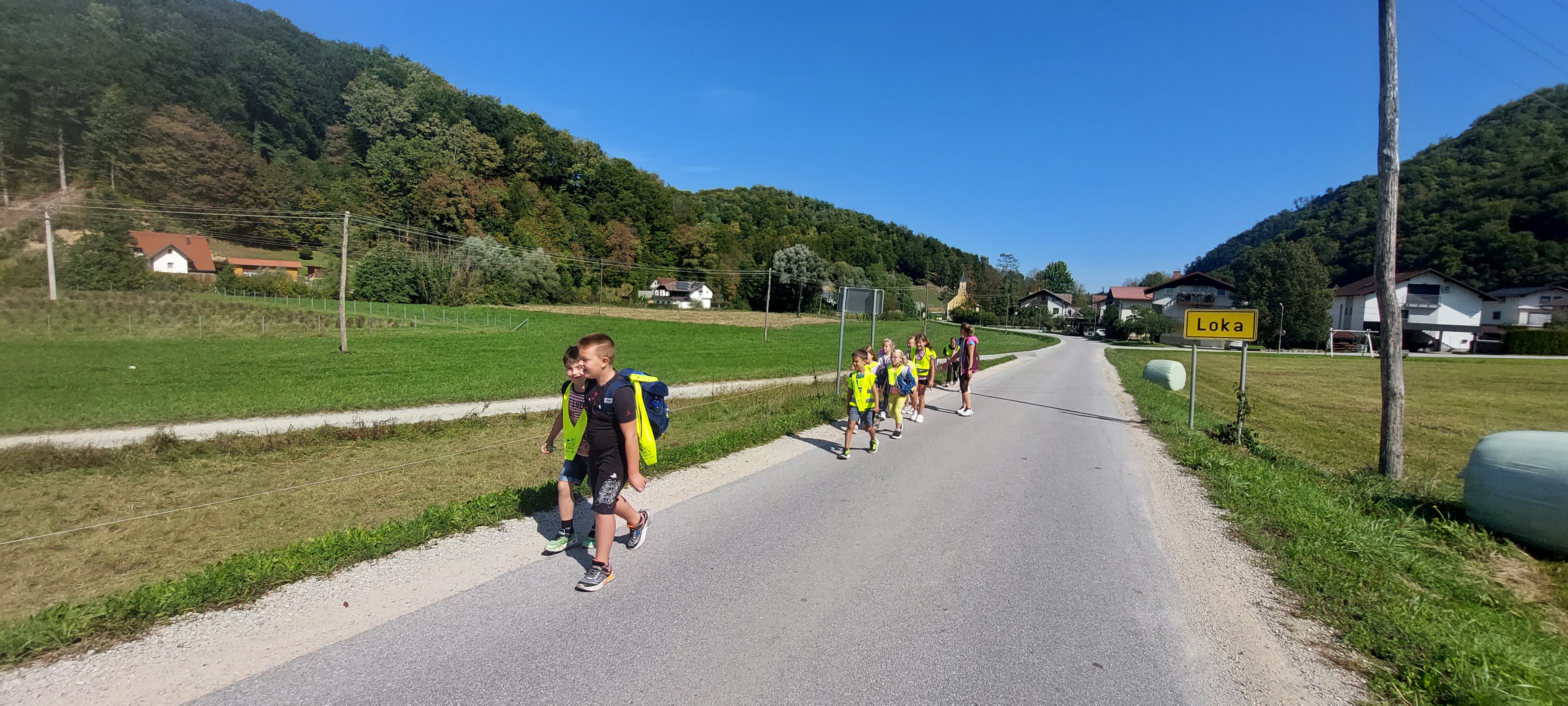 Tako smo se v četrtek, 18. 9. 2025, zjutraj ob 6.45 zbrali pred šolo in peš krenili do postaje Mrzlek. Tam so nas že čakali naši sošolci, ki so želeli iti v šolo peš, in krenili smo proti Loki. Nekateri s šolsko torbo, drugi brez, nekateri z daljšimi, drugi s krajšimi koraki, a vsi z dobro voljo in nasmehom na obrazu. Kar 17 nas je v spremstvu učiteljic in z glasnim klepetom prikorakalo v šolo.