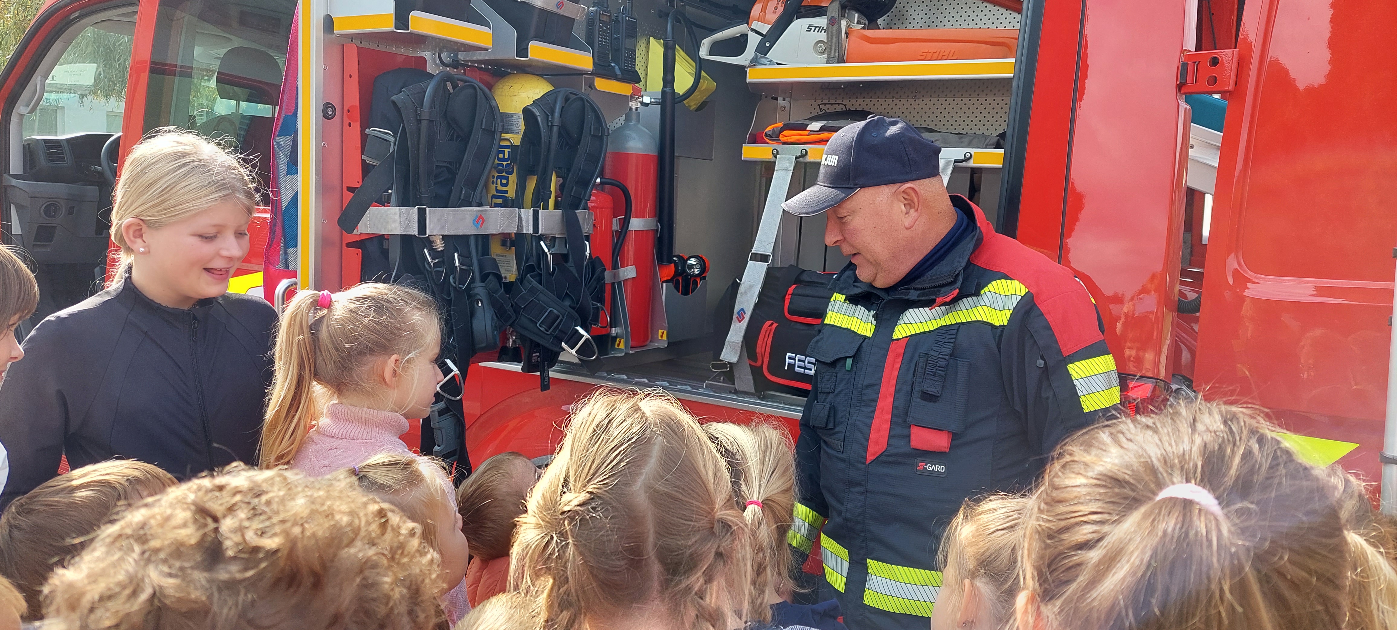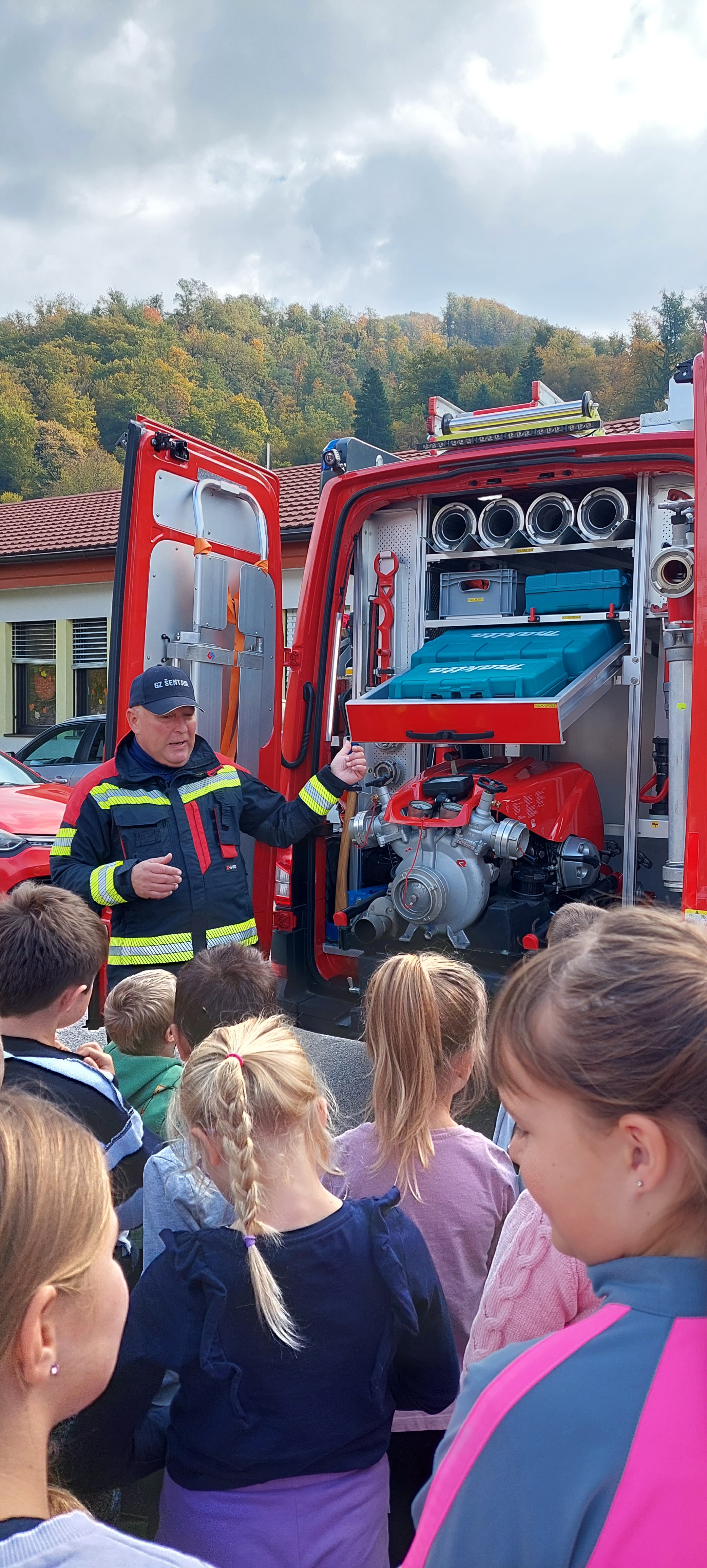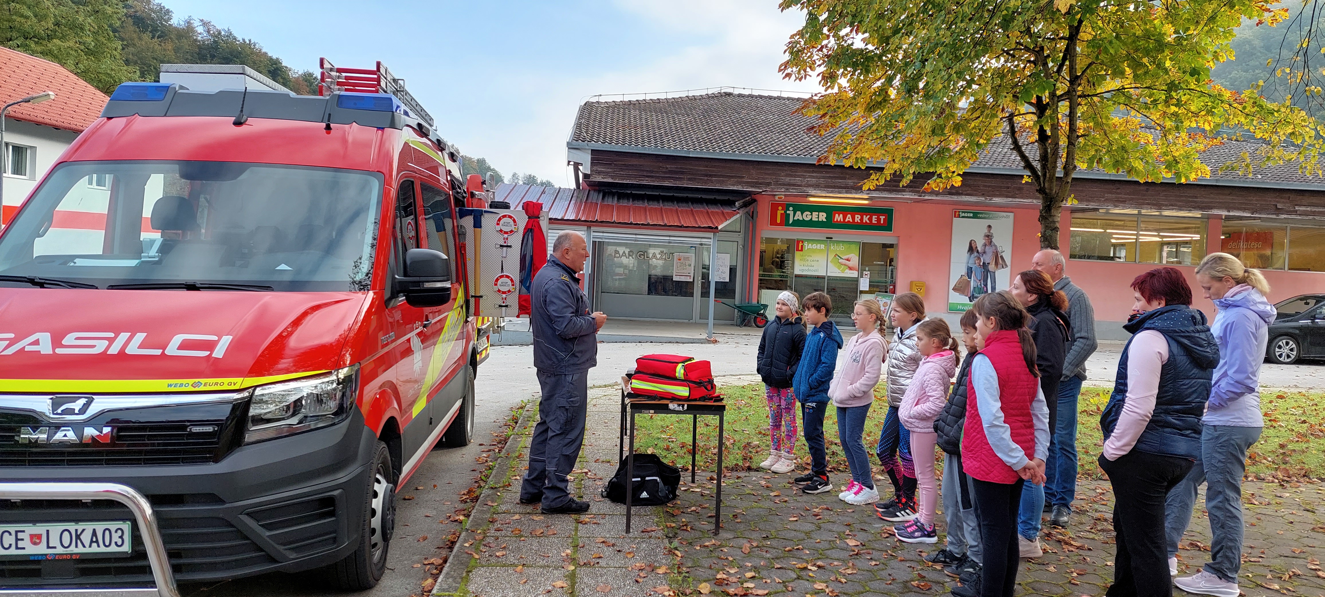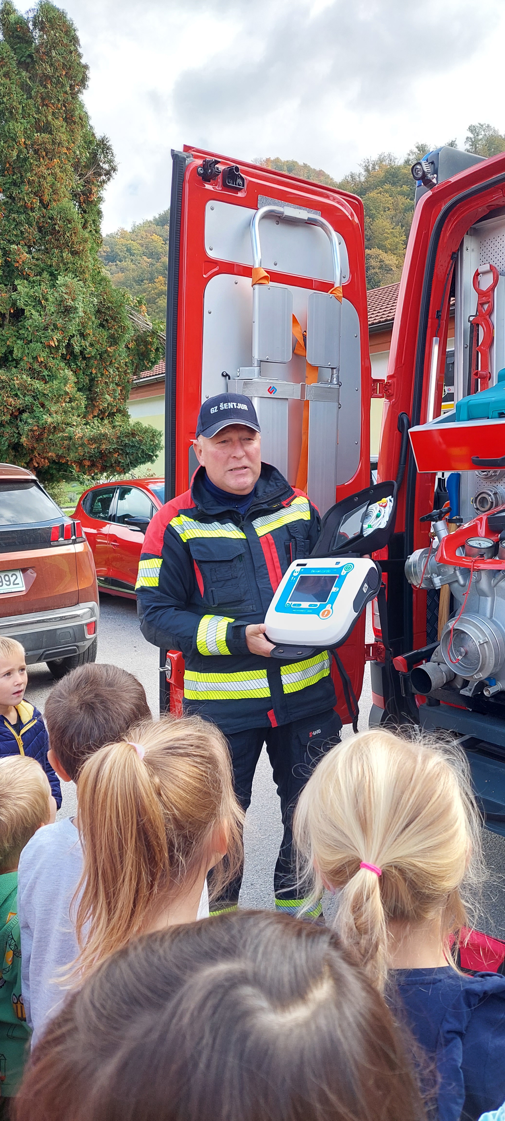 Na dogodek smo bili povabljeni tudi učenci naše šole z učiteljicami in starši. Tako smo se ob 9. uri zbrali v centru Loke, kjer nam je poveljnik gasilcev, gospod Darko Mikša, pokazal in predstavil novo pridobitev društva, avtomatski eksterni defibrilator (AED). Ponosno je povedal, da so ga kupili s prostovoljnimi prispevki krajanov in bodo z njim zagotovo komu rešili življenje. Ogledali smo si tudi gasilski avto z vso njegovo opremo ter se dogovorili, da nam gasilci ob naslednjem dnevu odprtih vrat pripravijo prikaz vaje gašenja manjšega požara.