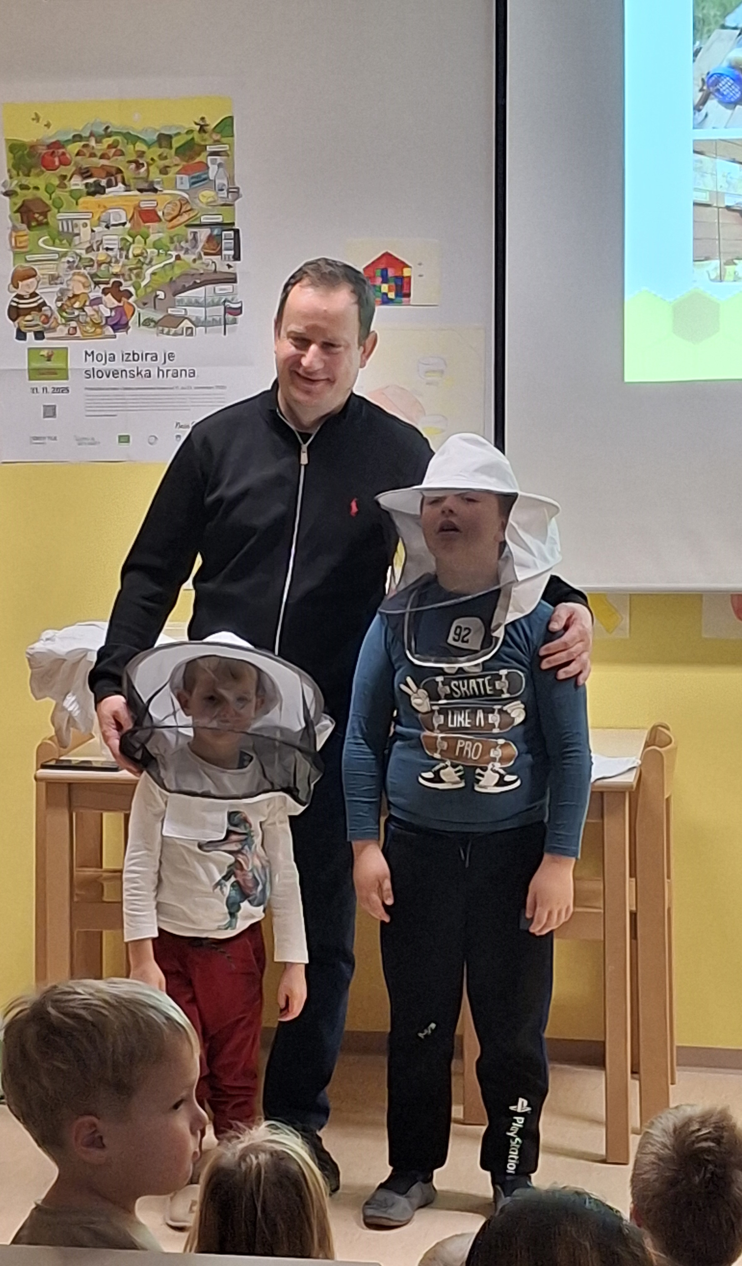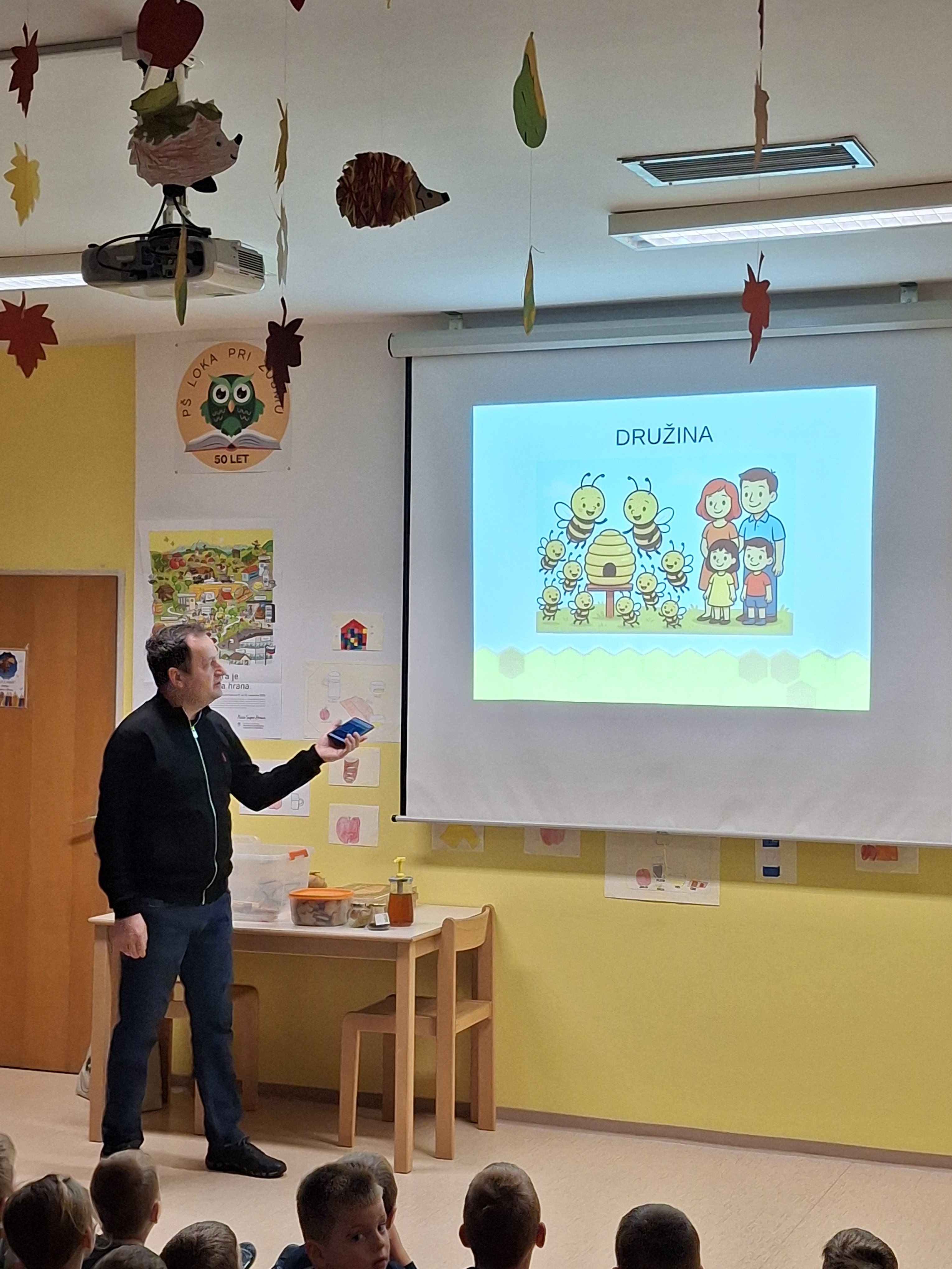Dan zdrave hrane s slovenskim tradicionalnim zajtrkom smo na naši šoli pričeli že v torek, 18.11. 2025, ko nas je obiskal čebelar, g. Anton Jug, predsednik Čebelarskega društva Šentjur. Učencem in otrokom iz vrtca je povedal in pokazal veliko zanimivega o življenju in delu naših pridnih čebelic.