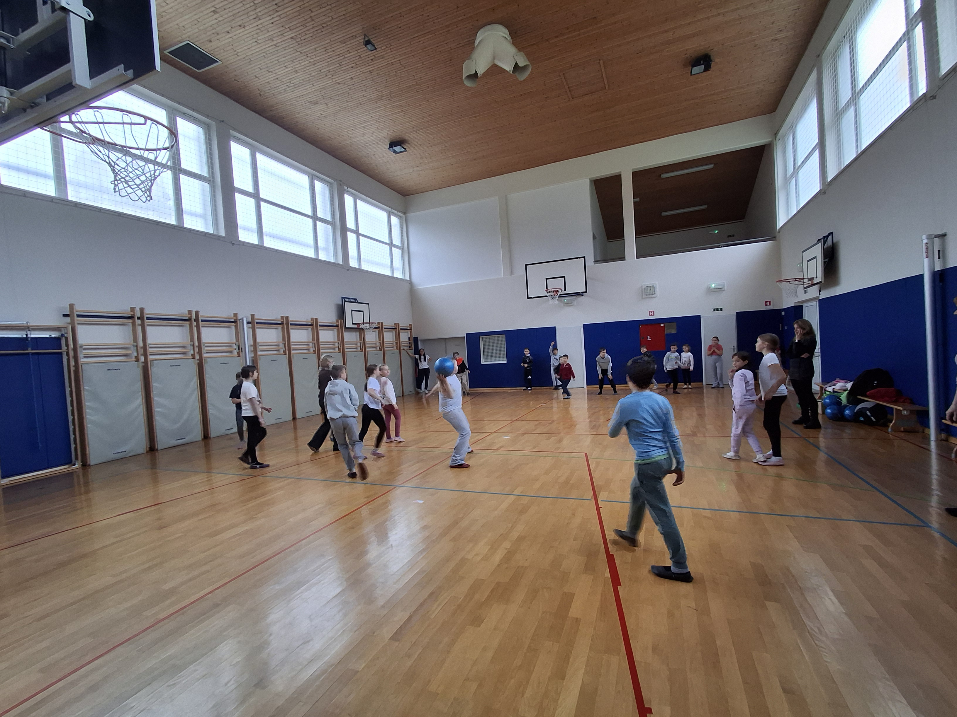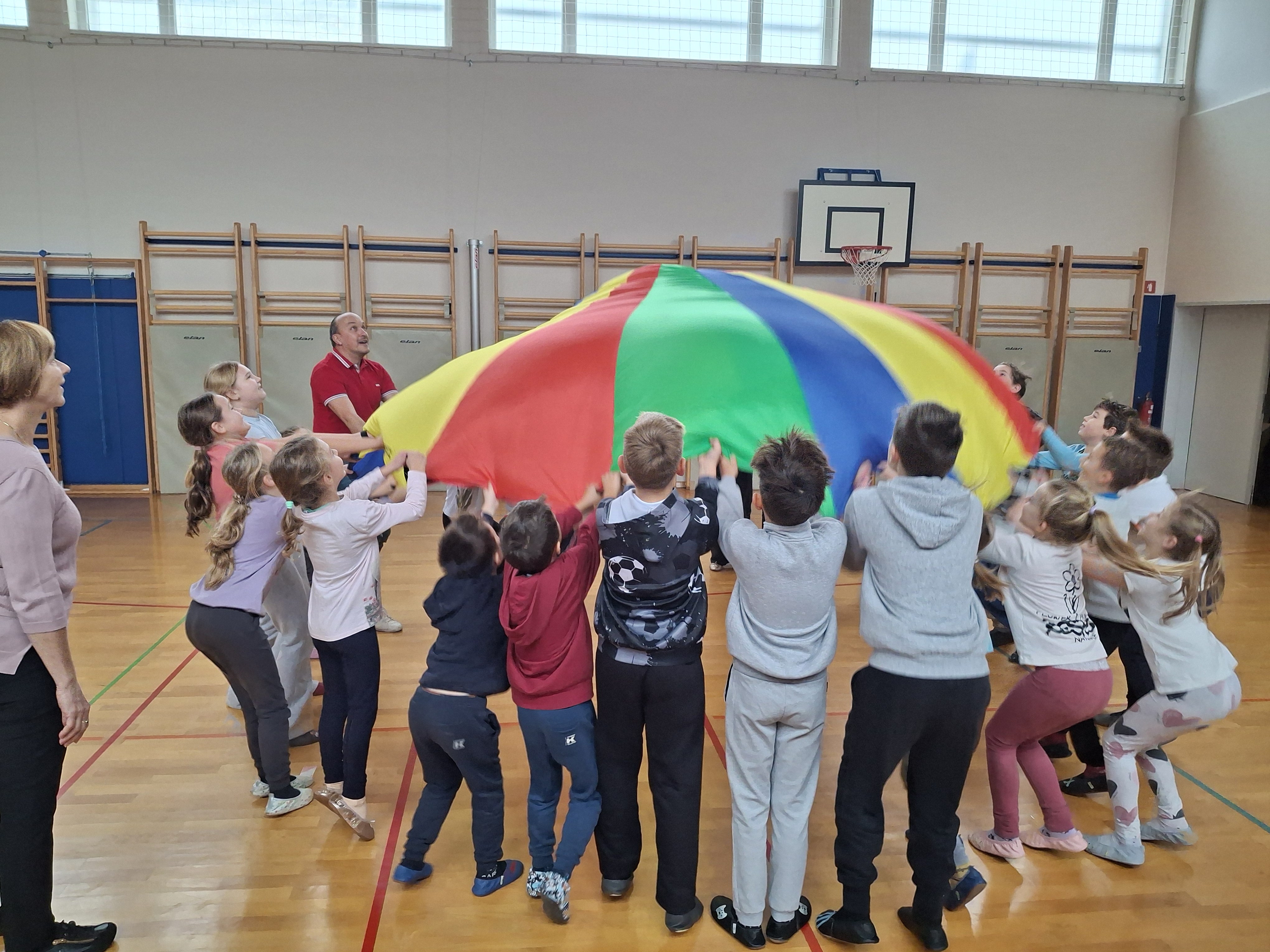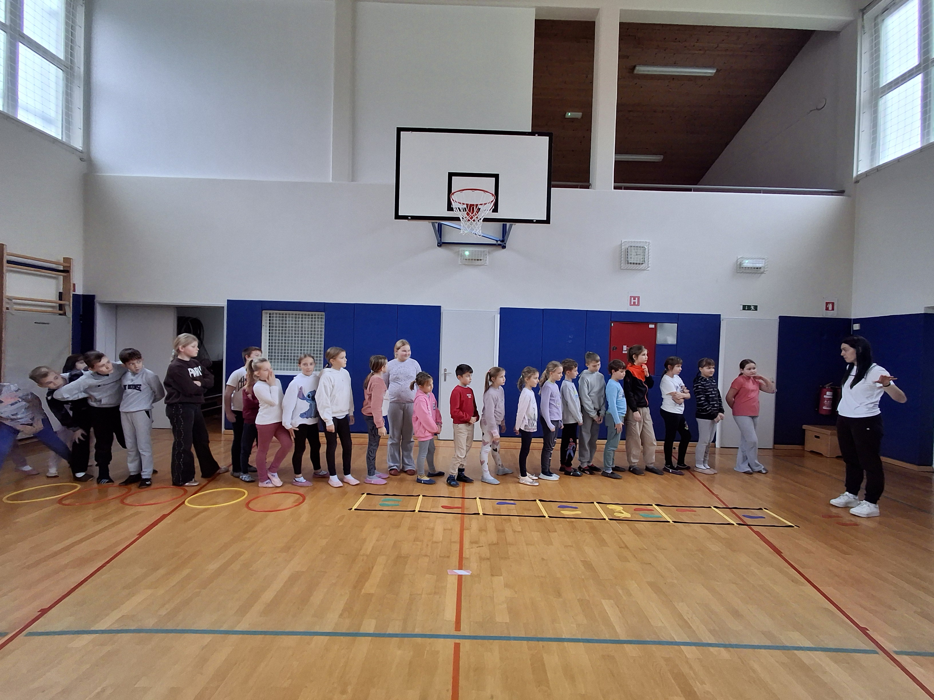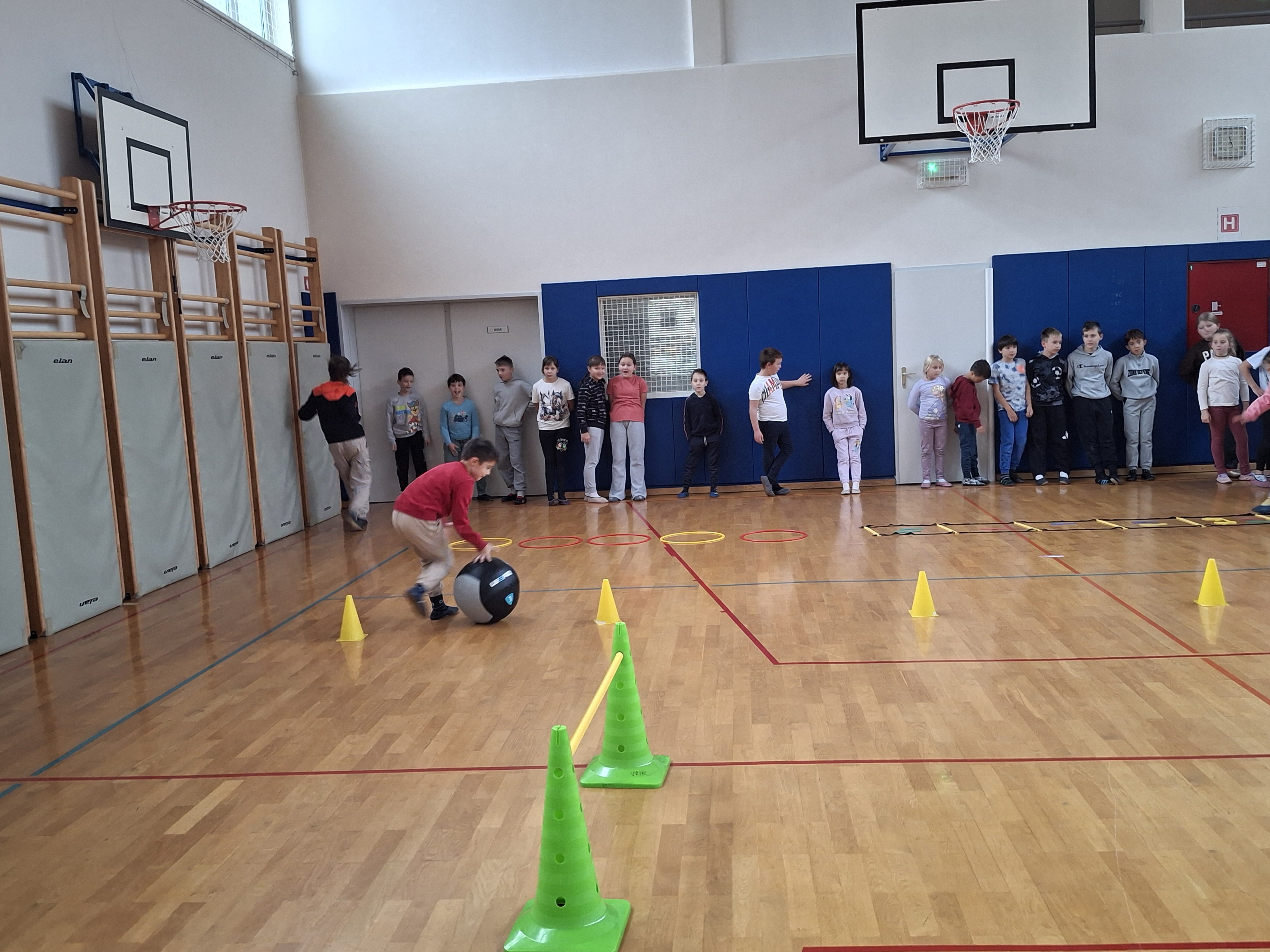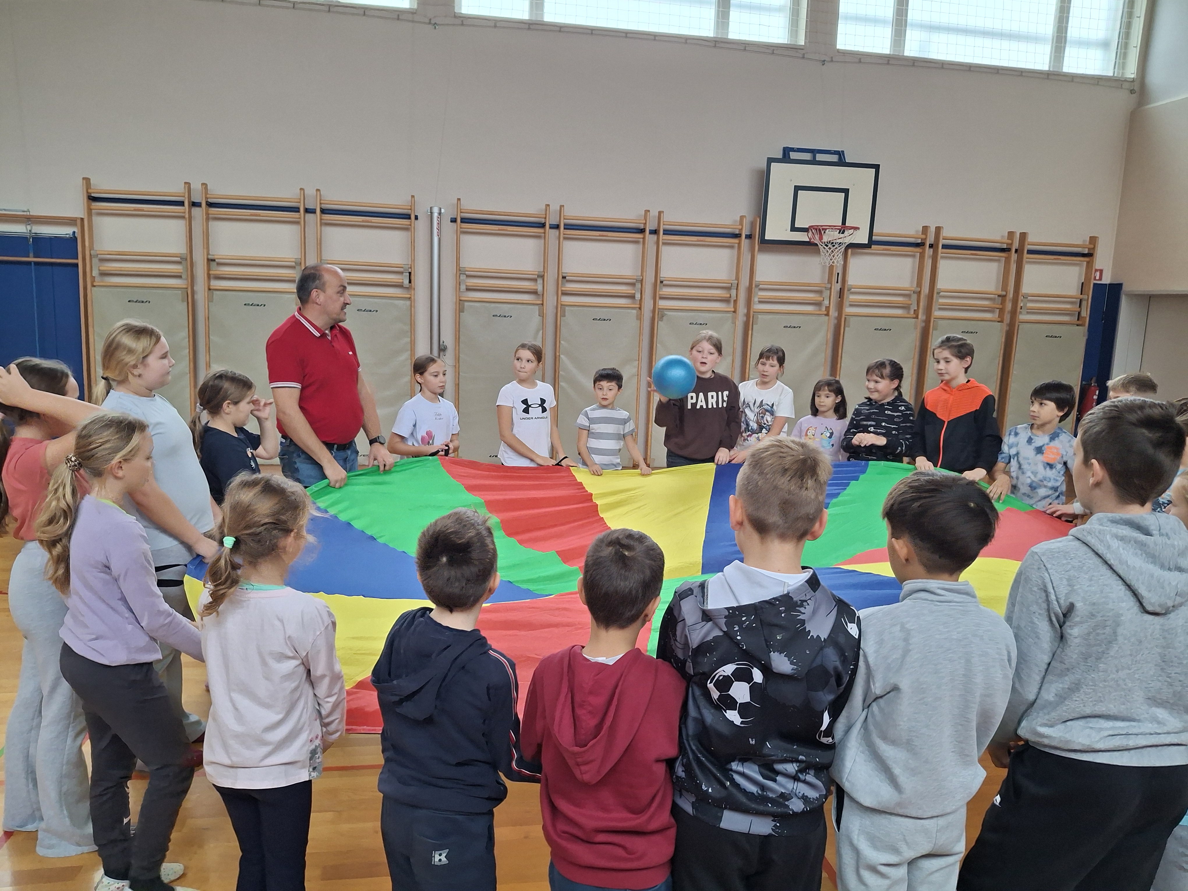 Dan smo nadaljevali v telovadnici s športom za zdravje, ki sta ga izvedla g. Jernej in ga. Lucija iz CKZ Šentjur. Najprej smo se dobro razgibali, potem pa izvajali gibalne aktivnosti z različnimi športnimi rekviziti. Zelo smo se zabavali.